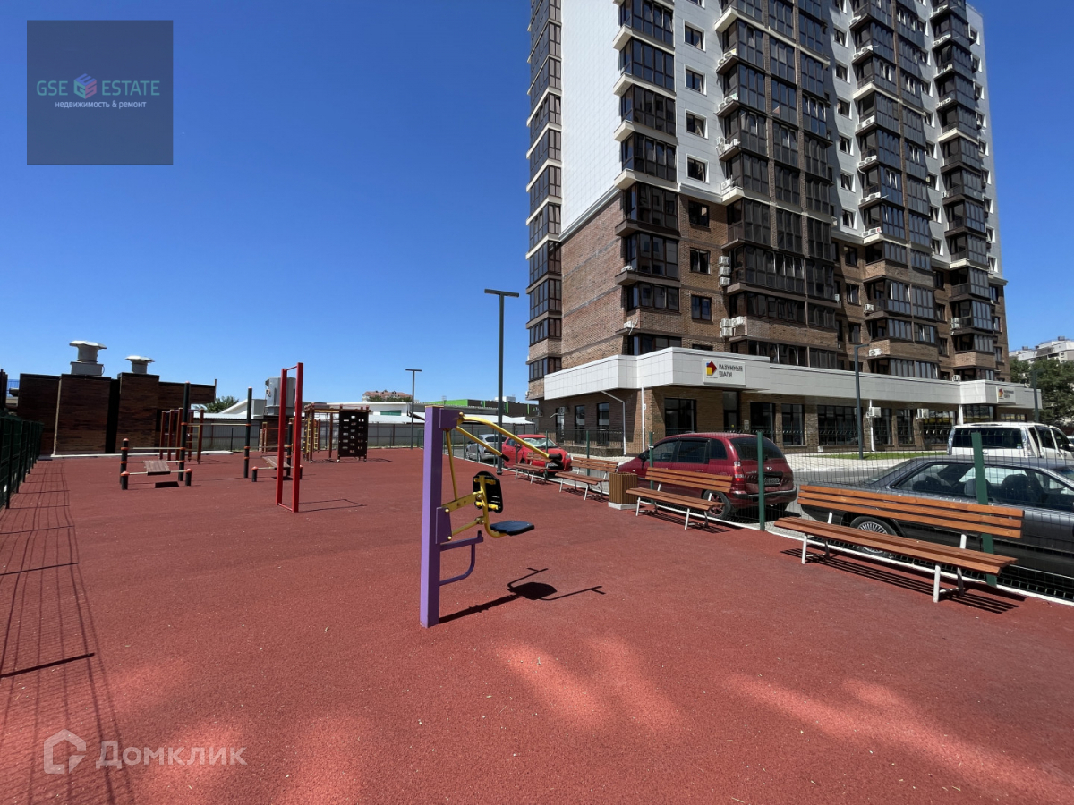 Придомовая территория закрытого типа, с видеонаблюдением, детской и спортивной площадками, есть места для парковки автомобилей, также можно приобрести место в подземной парковке.