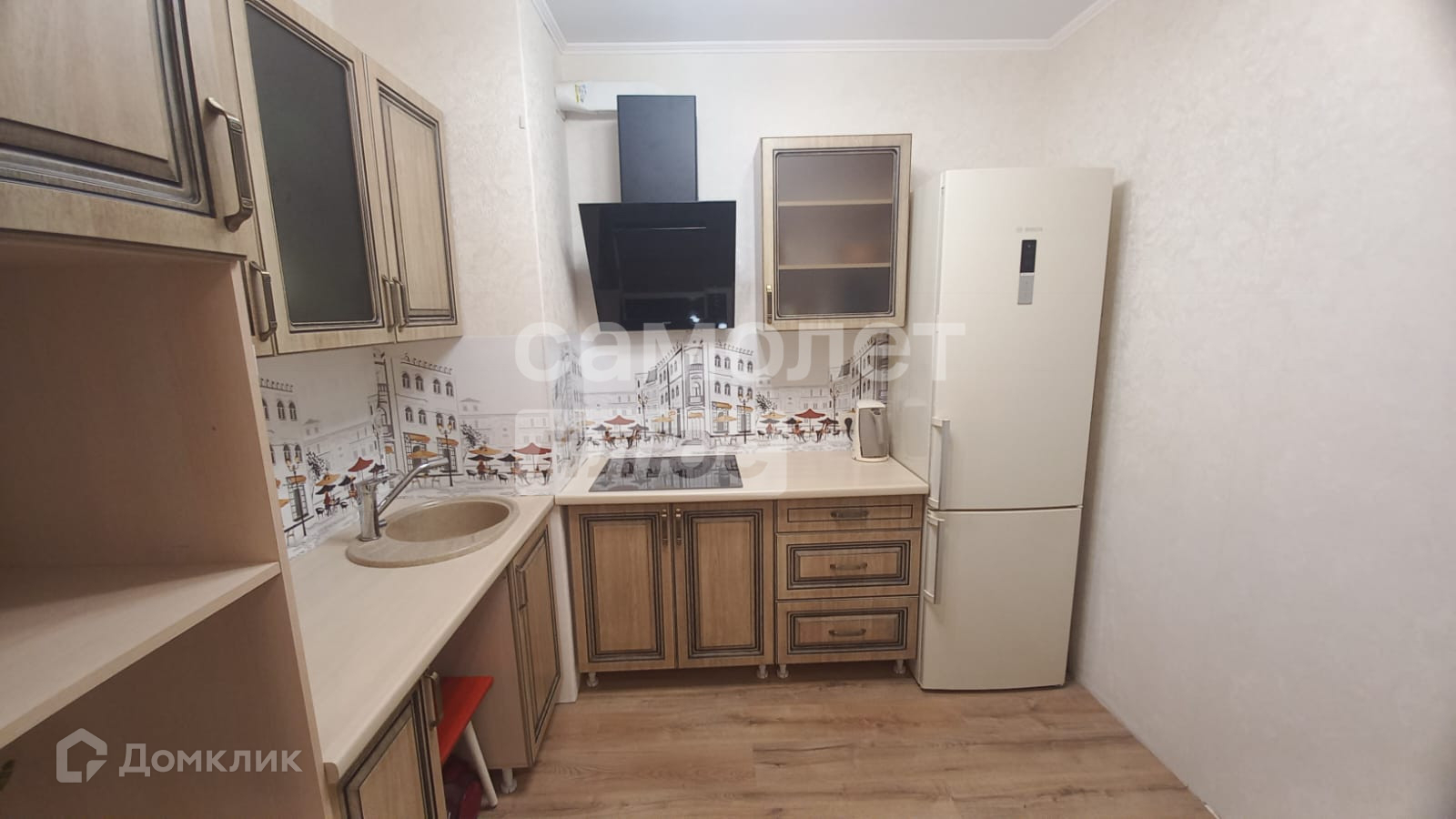 Их  техники  в кухне остается -вытяжка ,  холодильник ,  встроенная  ,электрическая  поверхность.