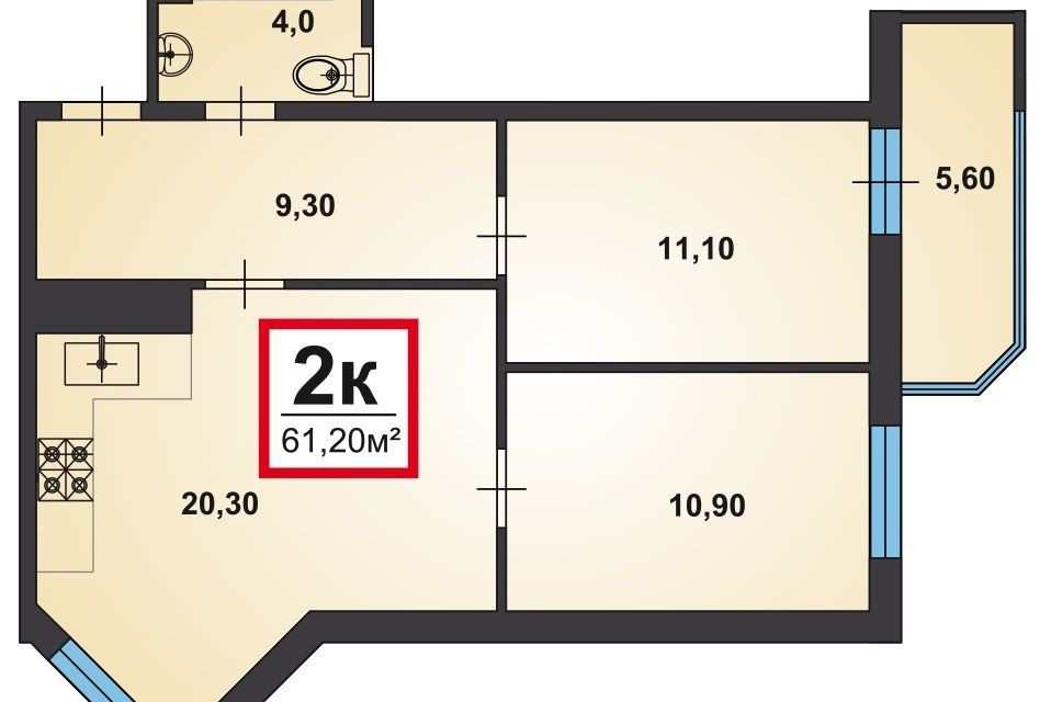 Общая площадь 61 м2