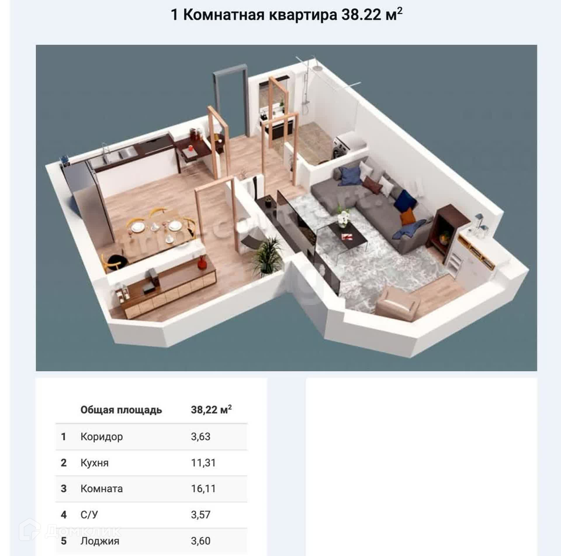 Общая площадь 38.22 м2
