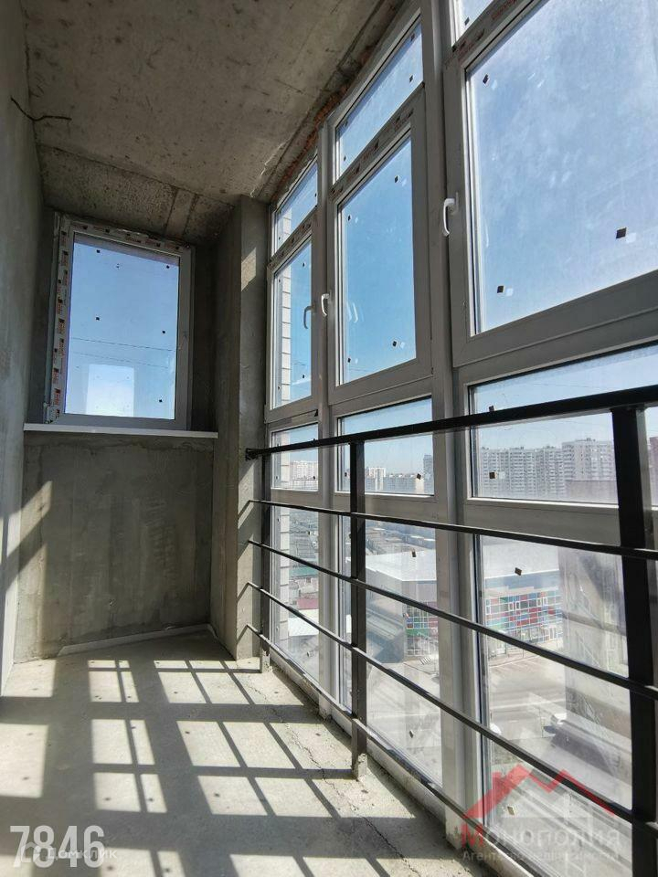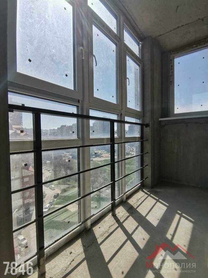 Продаётся однокомнатная квартира с предчистовой отделкой. В квартире уже выполнены стяжка, штукатурка и разводка электропроводки. Из панорамных окон открывается красивый вид. Балкон остеклён витражами, что придаёт ему особый шарм.   Подъезд дома красивый и чистый, с двумя бесшумными скоростными лифтами — грузовым и пассажирским. Входная дверь качественная.