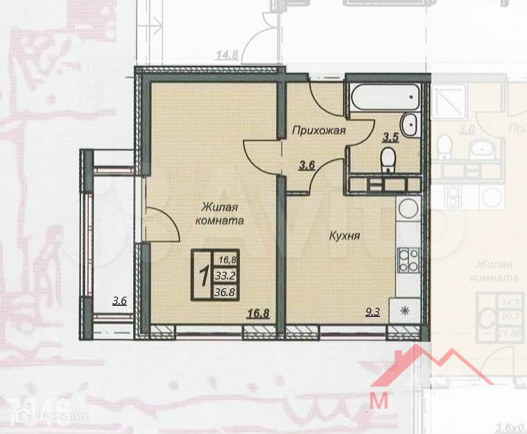 Общая площадь 36 м2