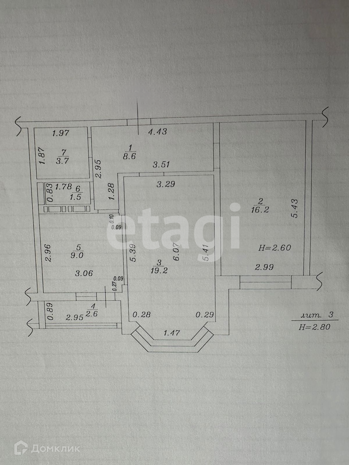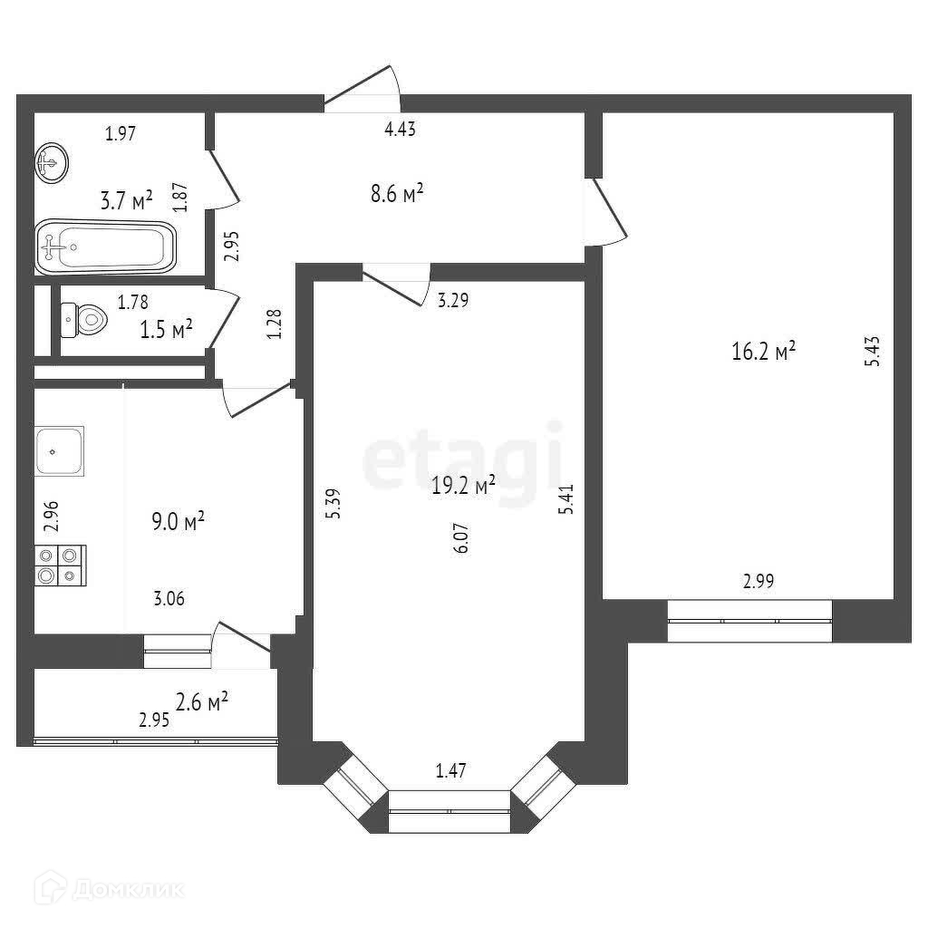 Общая площадь 59.5 м2