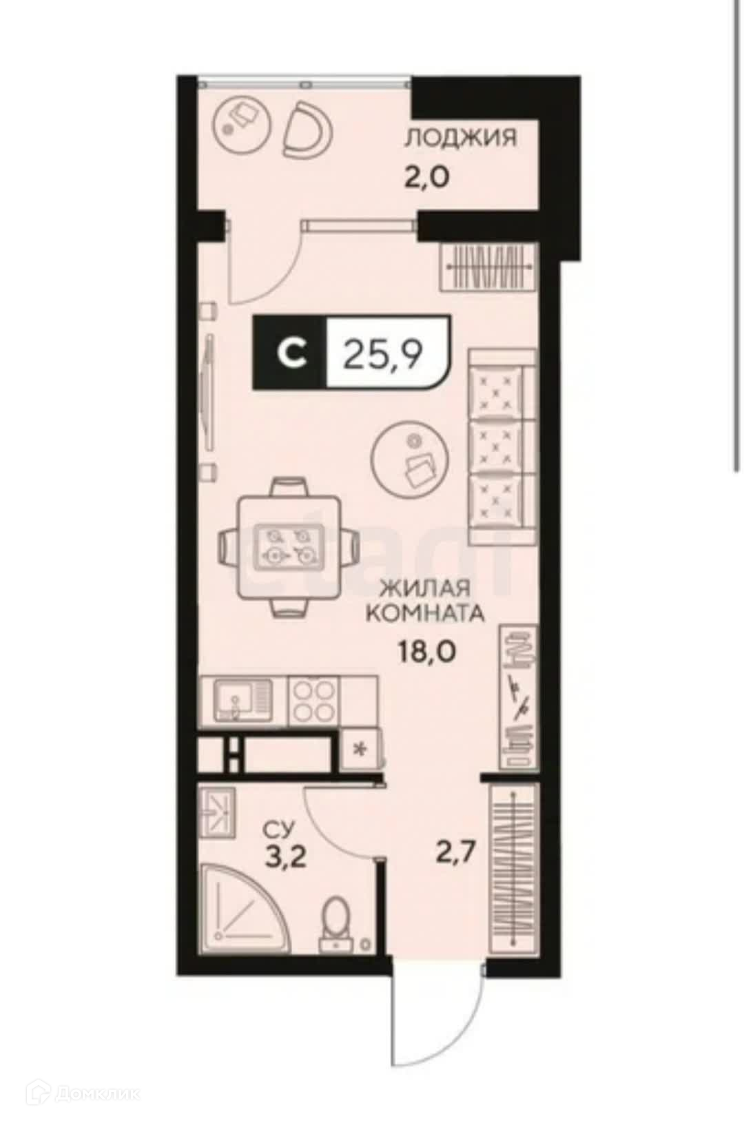 Общая площадь 25.9 м2