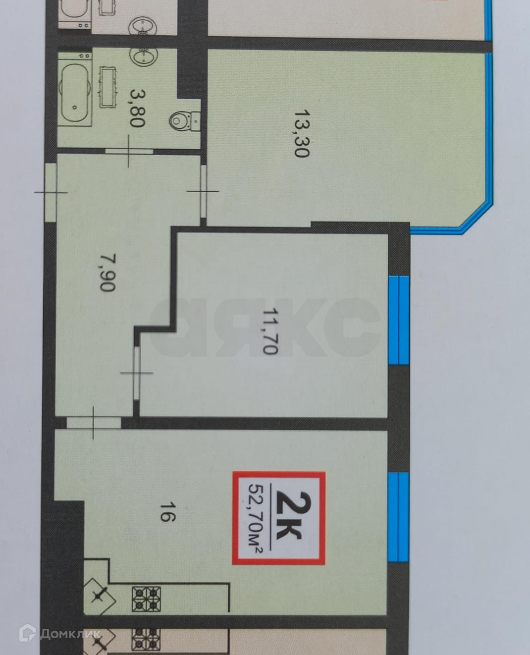 Общая площадь 52.7 м2
