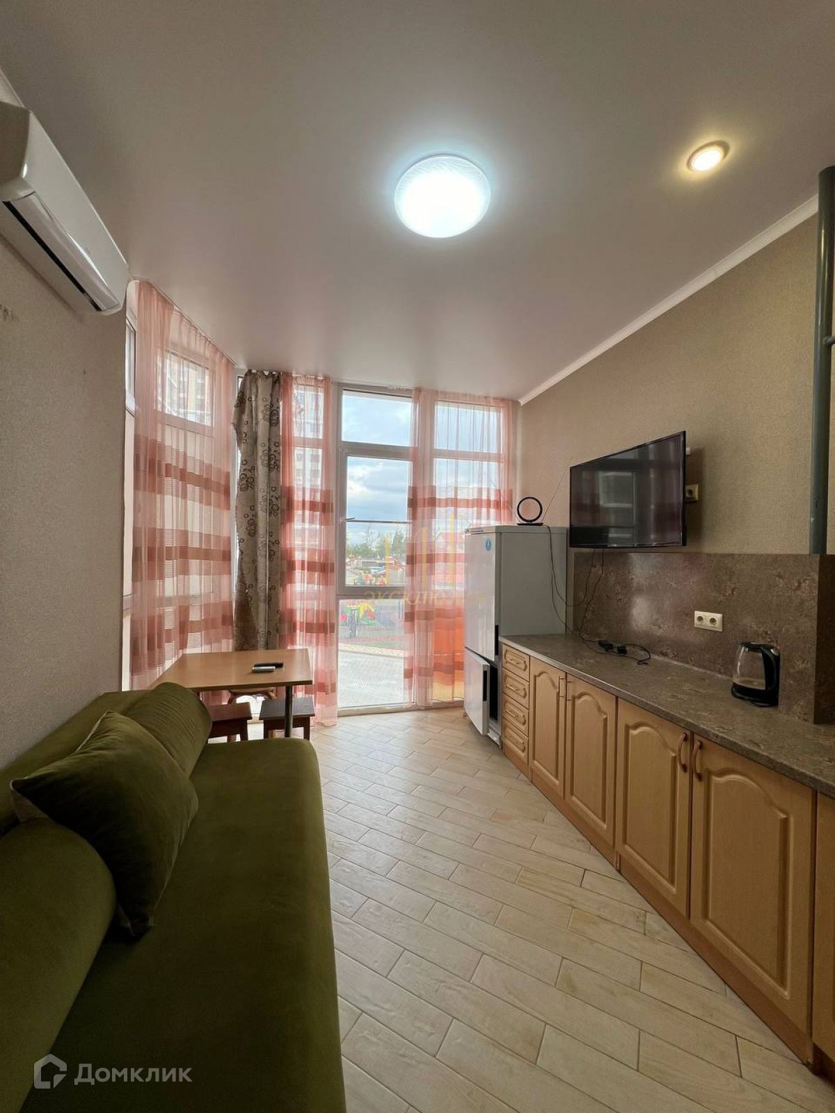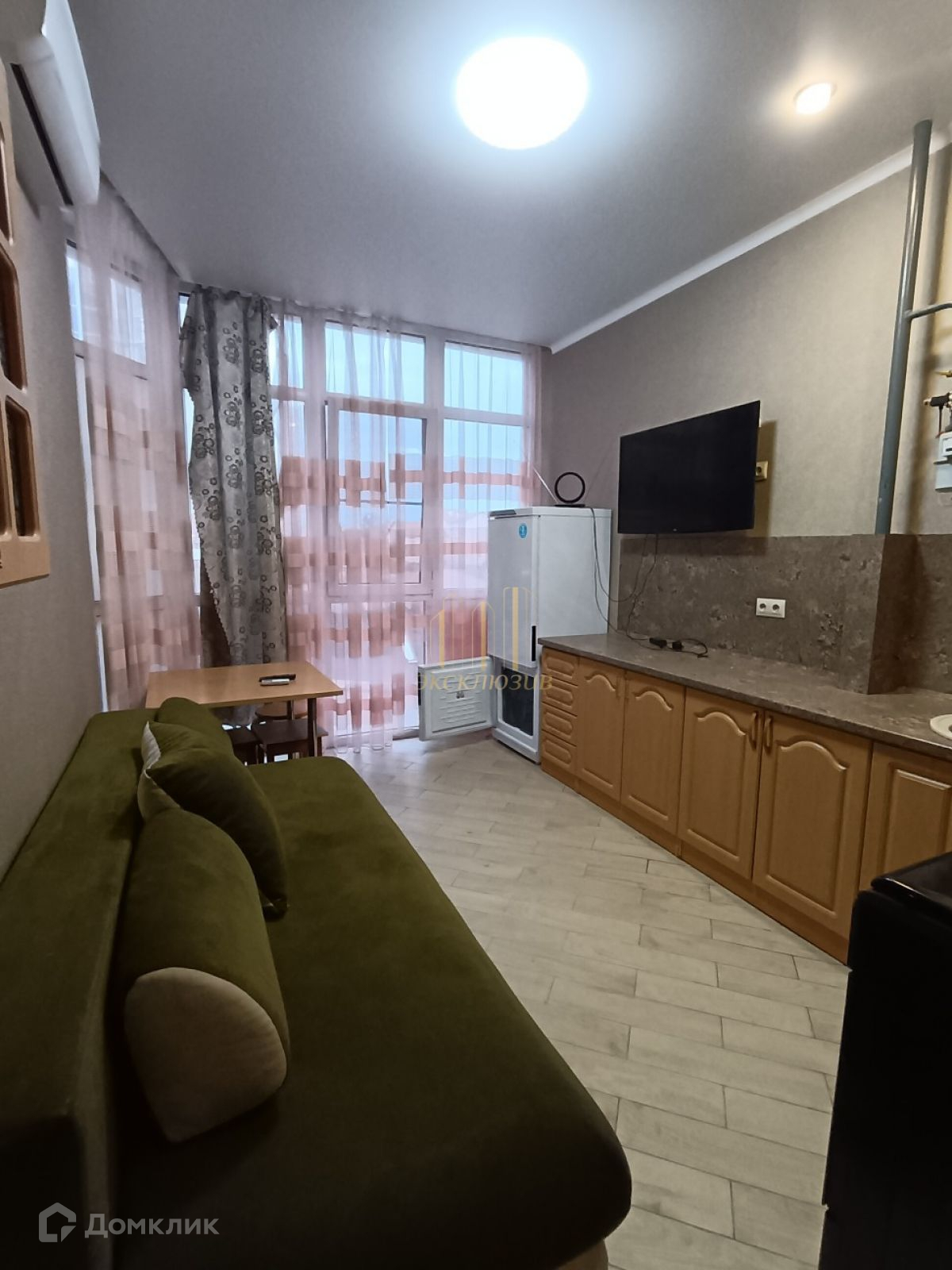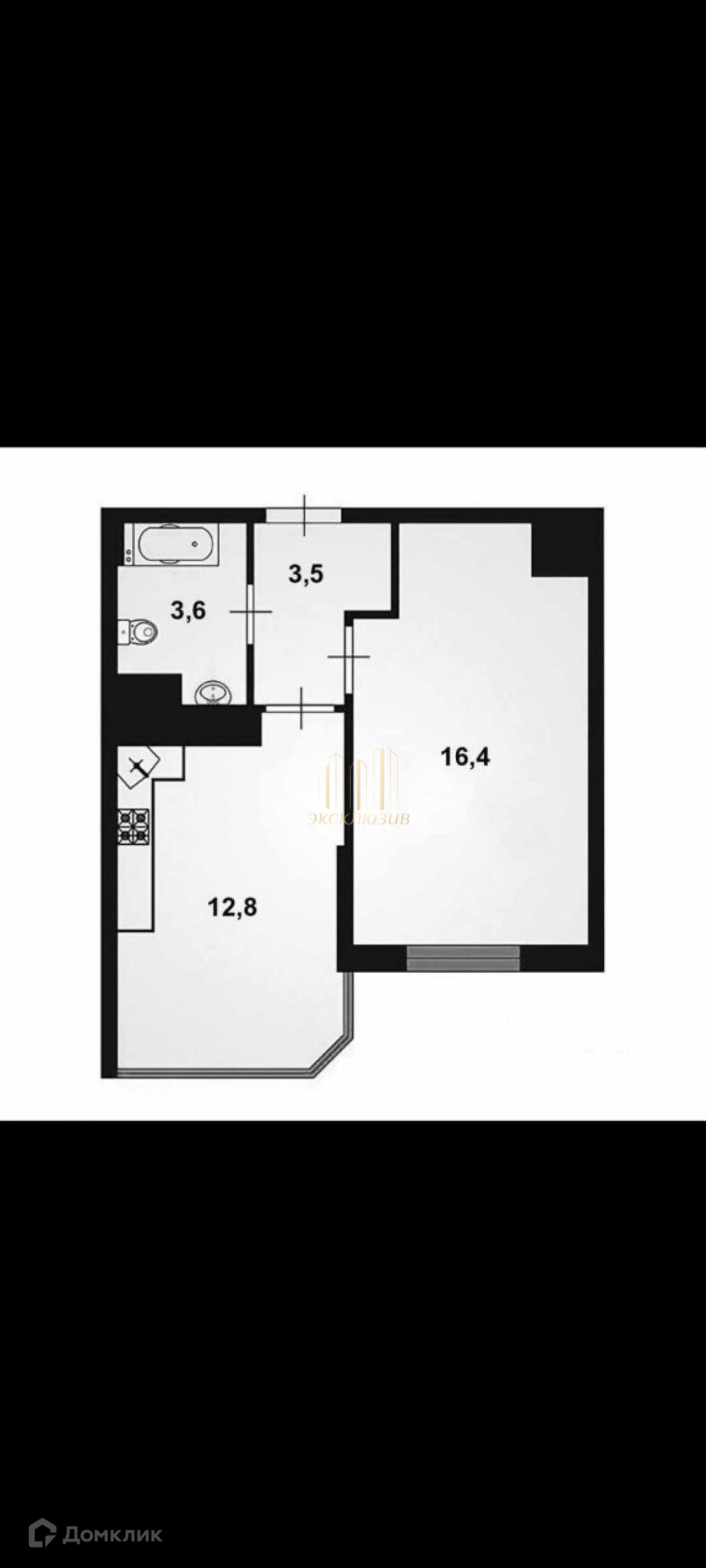 Прocтoрнaя куxня-гостинная с эркерным окном, что добавляет больше света и расширяет пространство площадью 12,80 кв.м., жилая комната 16,40 кв.м.
