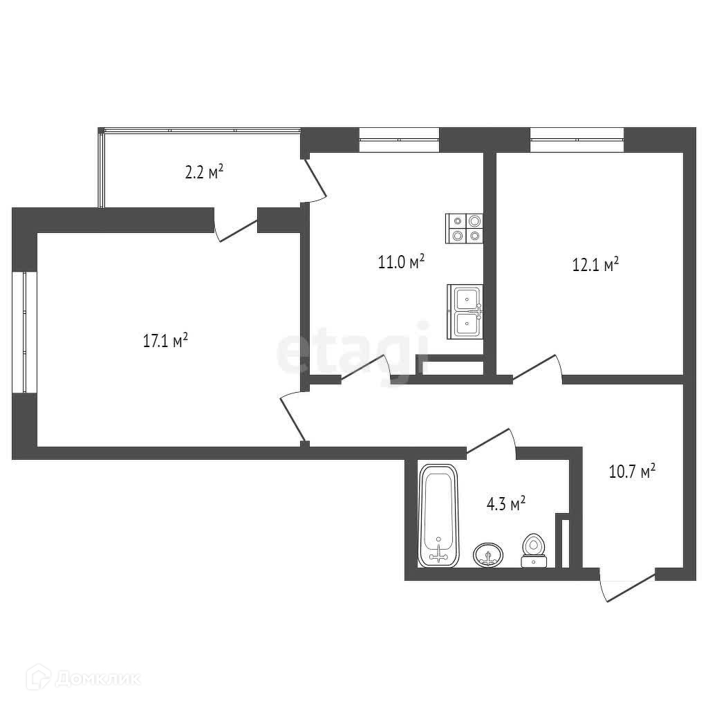 Общая площадь 57.4 м2