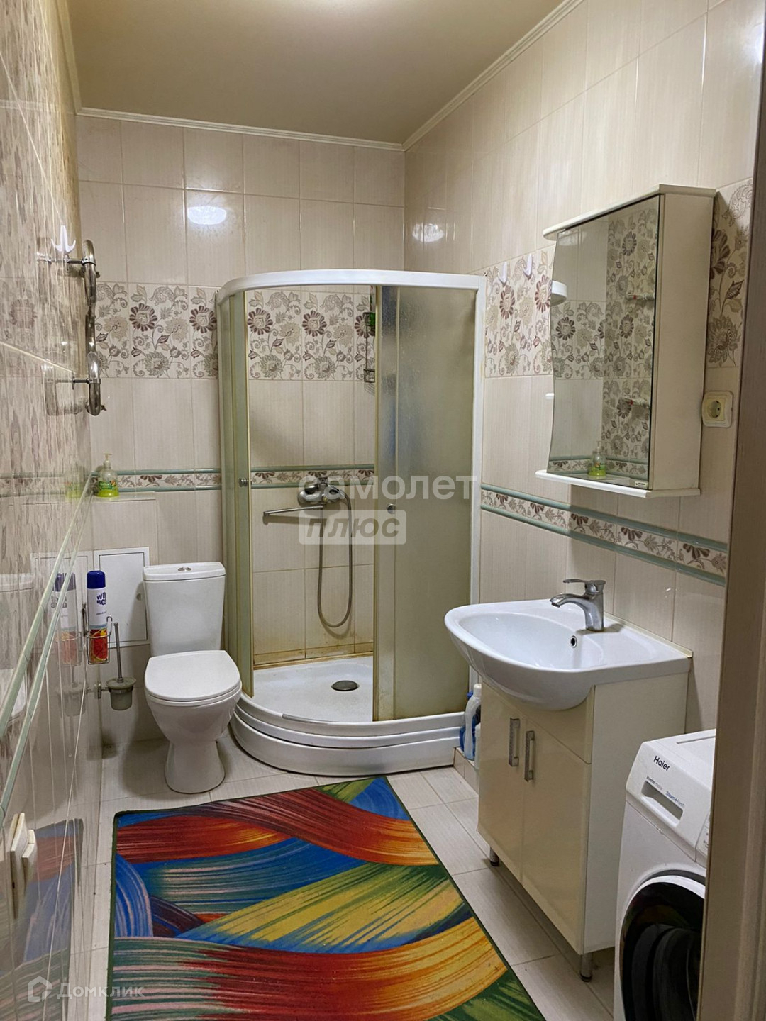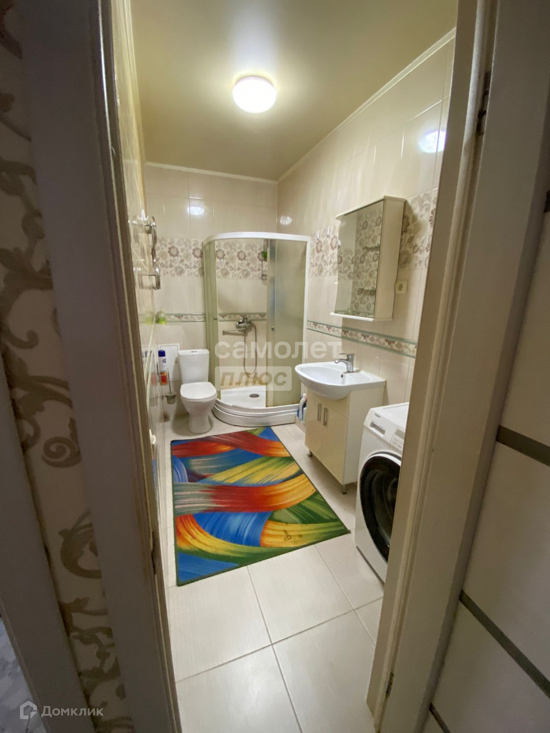 - санузел совмещен, в кафеле, душевая кабина, раковина,