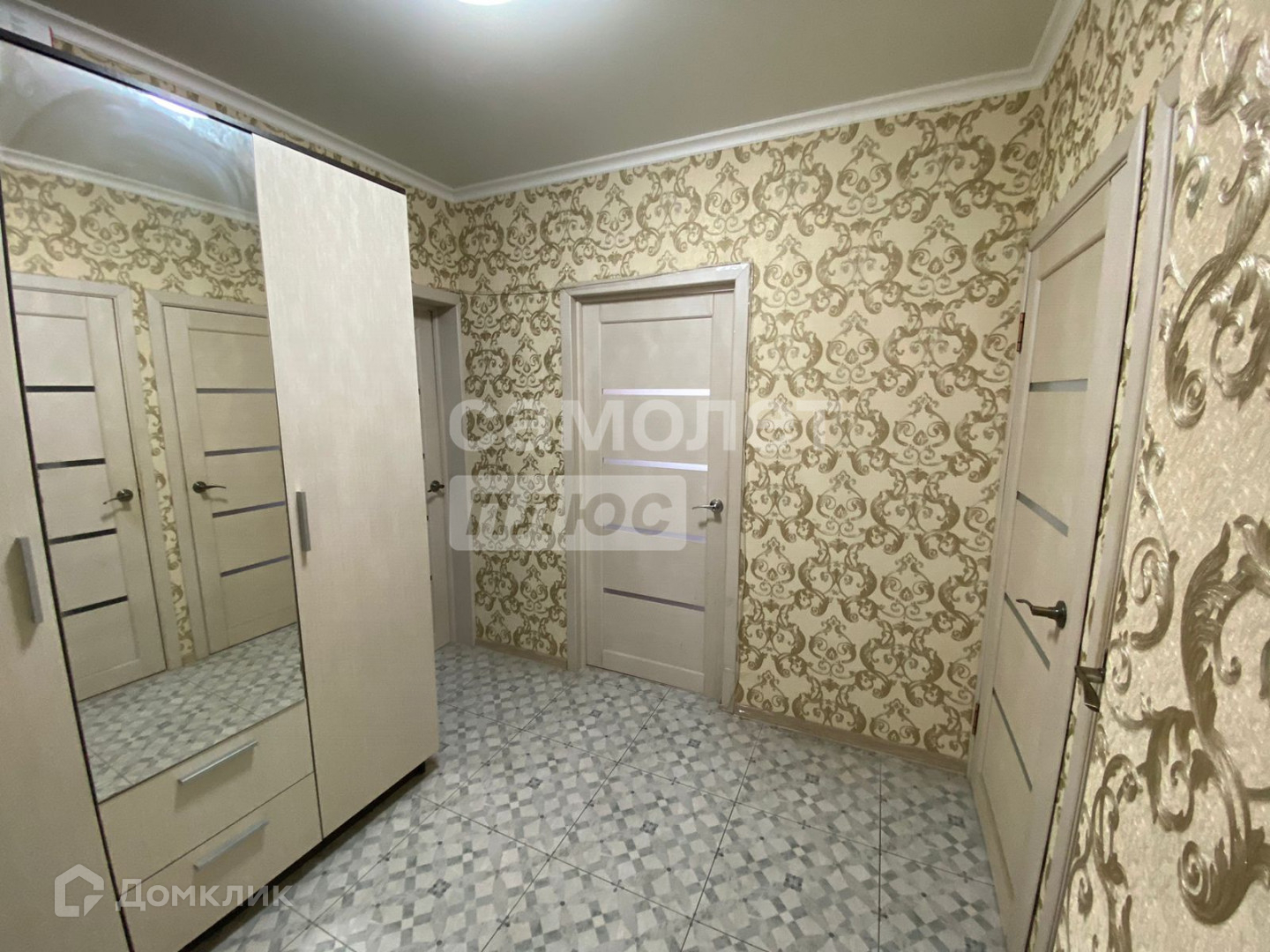 - поклеены современные обои, на полу кафель/ламинат,