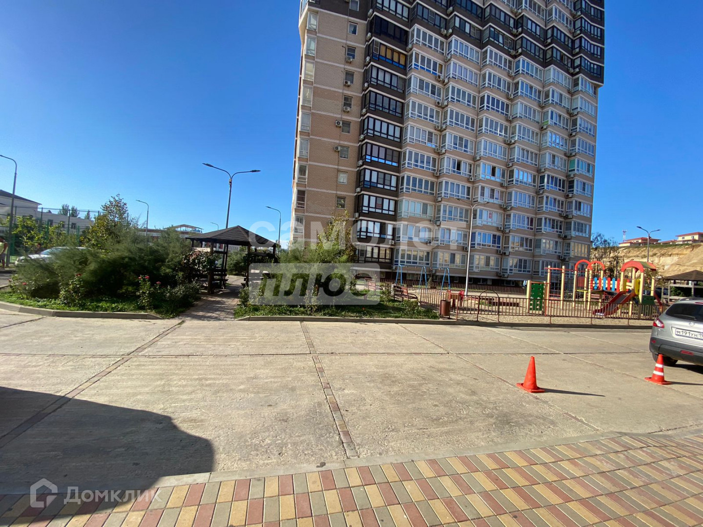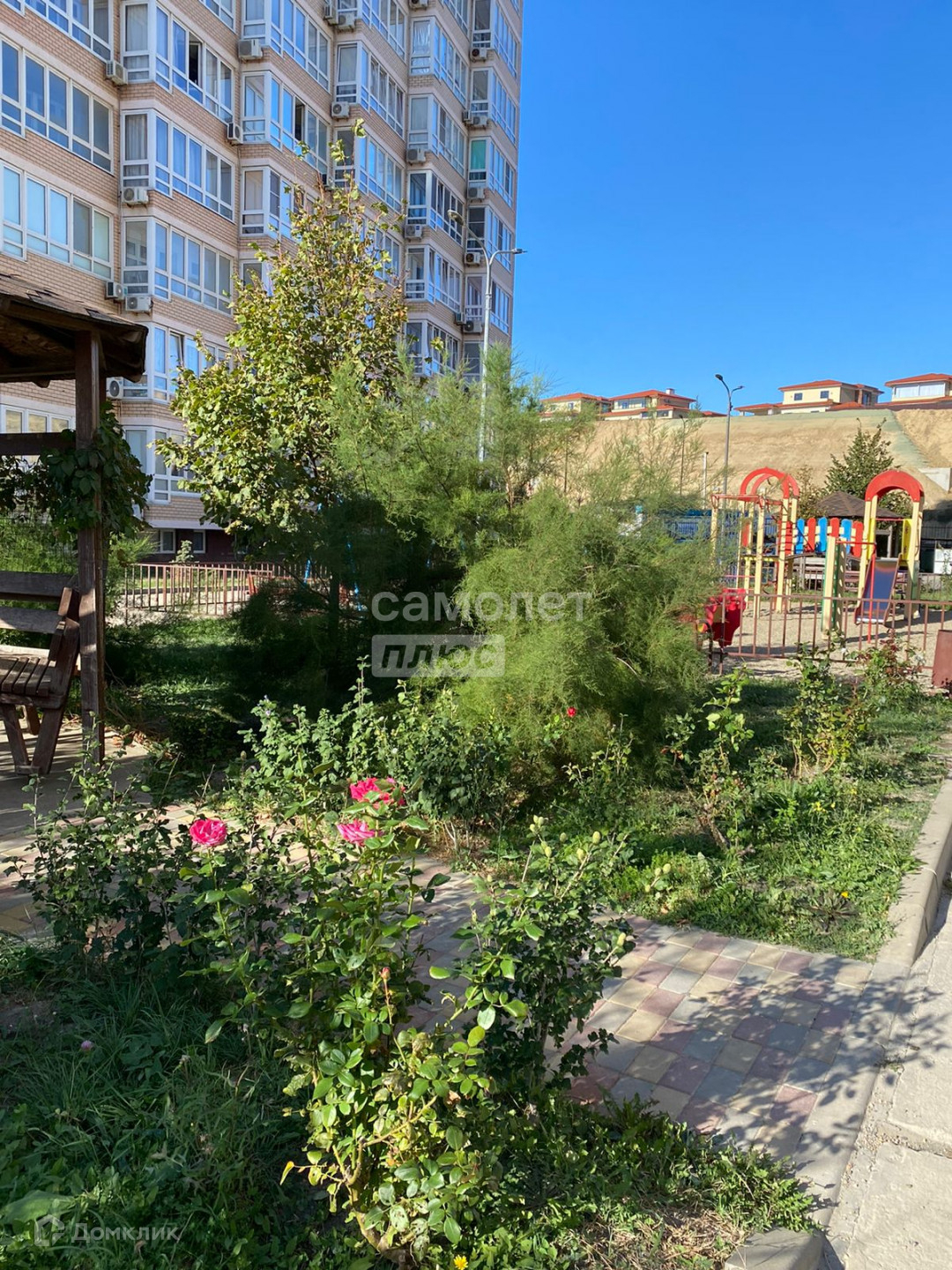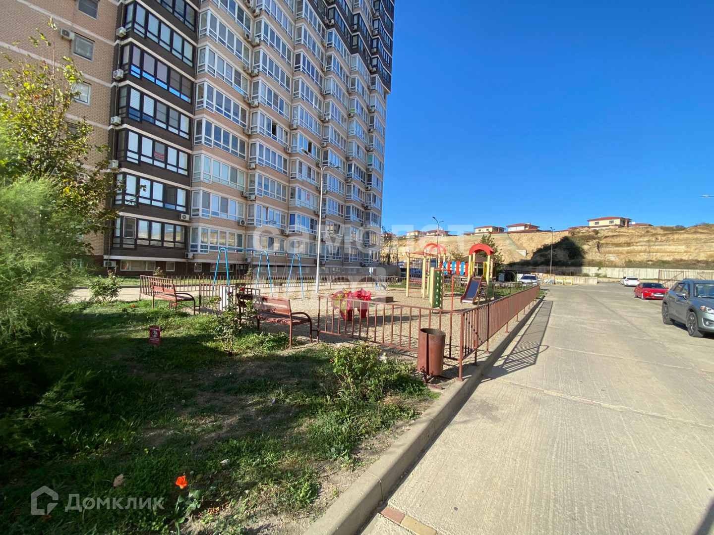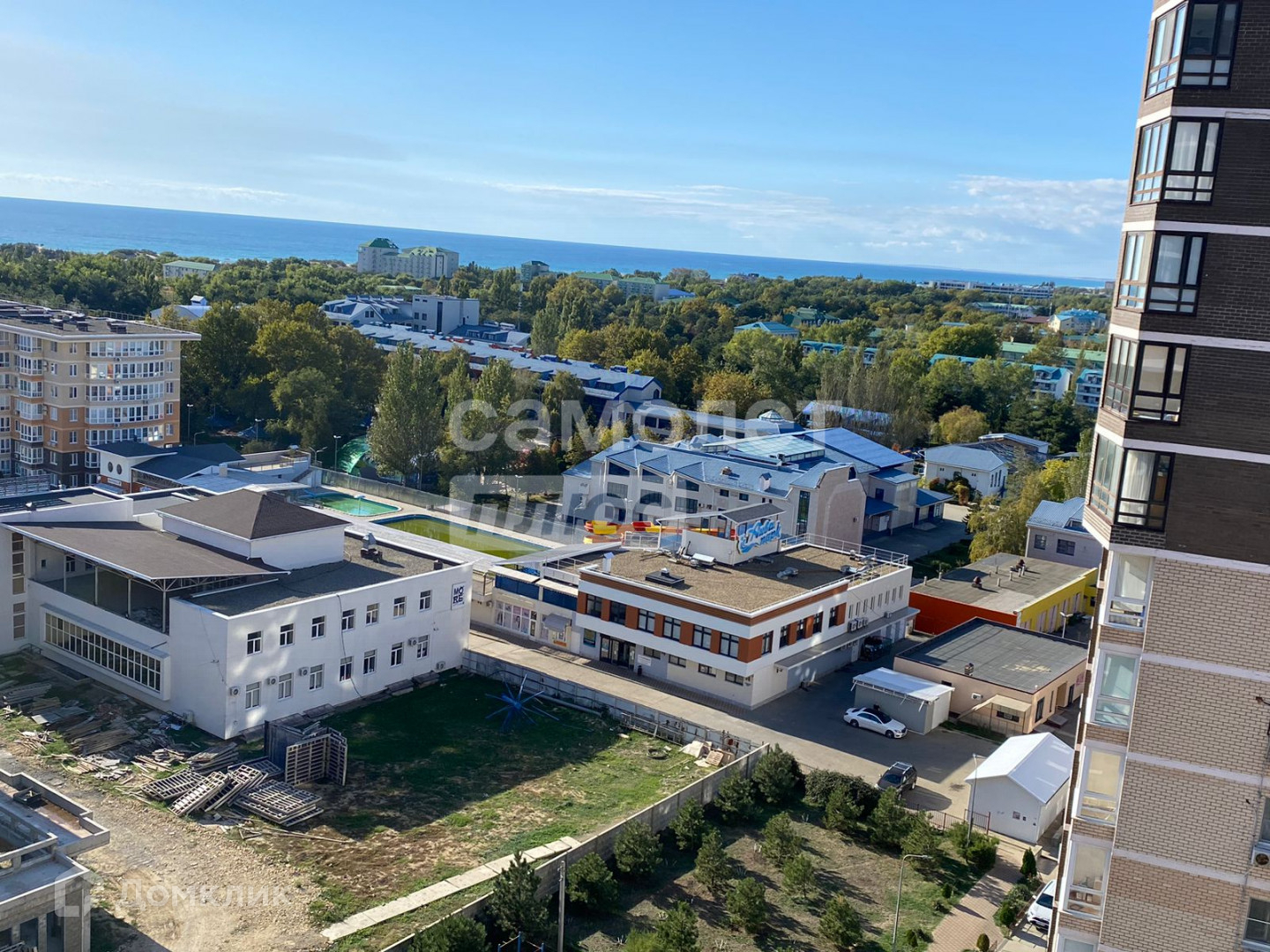 Чистый, ухоженный подъезд, добродушные соседи. Из окон лоджии и эркера комнаты открываются завораживающие виды на начало Кавказских гор и Черное море. С общего балкона (эвакуационный выход) шикарнейший вид на море, аквапарк, находящийся на территории ЖК, детскую площадку и парковку автомобилей. Во дворе оборудована детская площадка, установлены 2 беседки для отдыха, растут кустарники, розы, есть парковочные места.