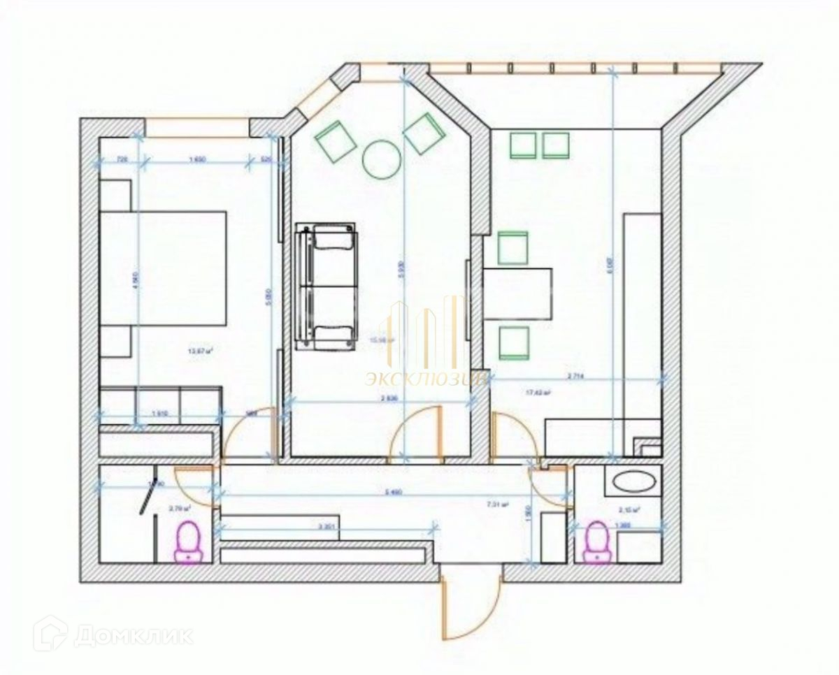 Общая площадь 60 м2