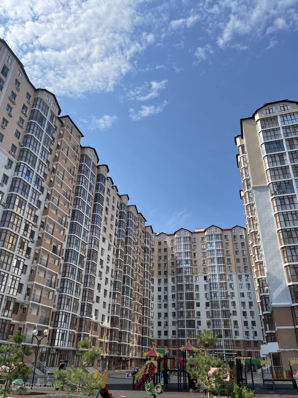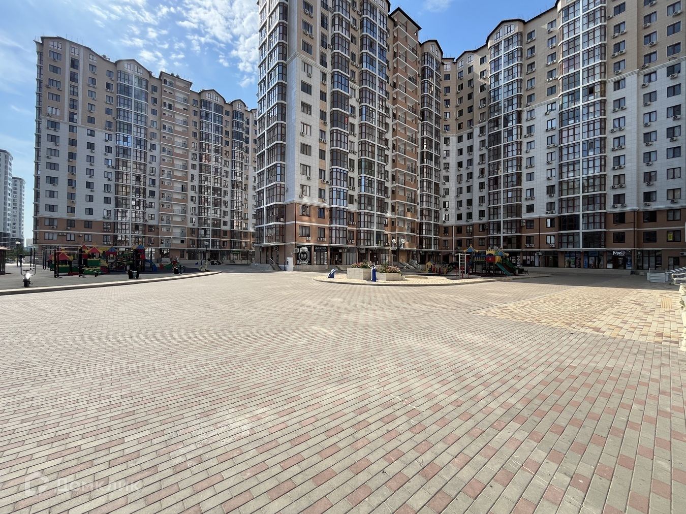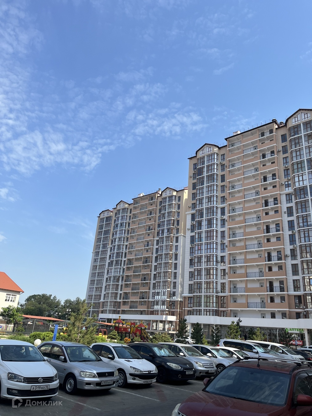 На территории есть своя аллея с фонтаном, детские игровые площадки, спортивные тренажеры, муниципальный садик, зоны барбекю, закрытая территория (двор без машин).На первых этажах всевозможные магазины, парикмахерские, салоны красоты, аптека, детский развивающий центр и др. В цокольном этаже есть колясочные зоны для хранения велосипедов, колясок и самокатов. 2-х этажный подземный паркинг.Гипермаркет «Магнит» .Супермаркет «Пятерочка». Гипермаркет мебели «Большой». Строительный магазин «Пирамида».Школа в 10 минутах ходьбы. Детский сад на территории комплекса.До моря 15 минут на машине.
