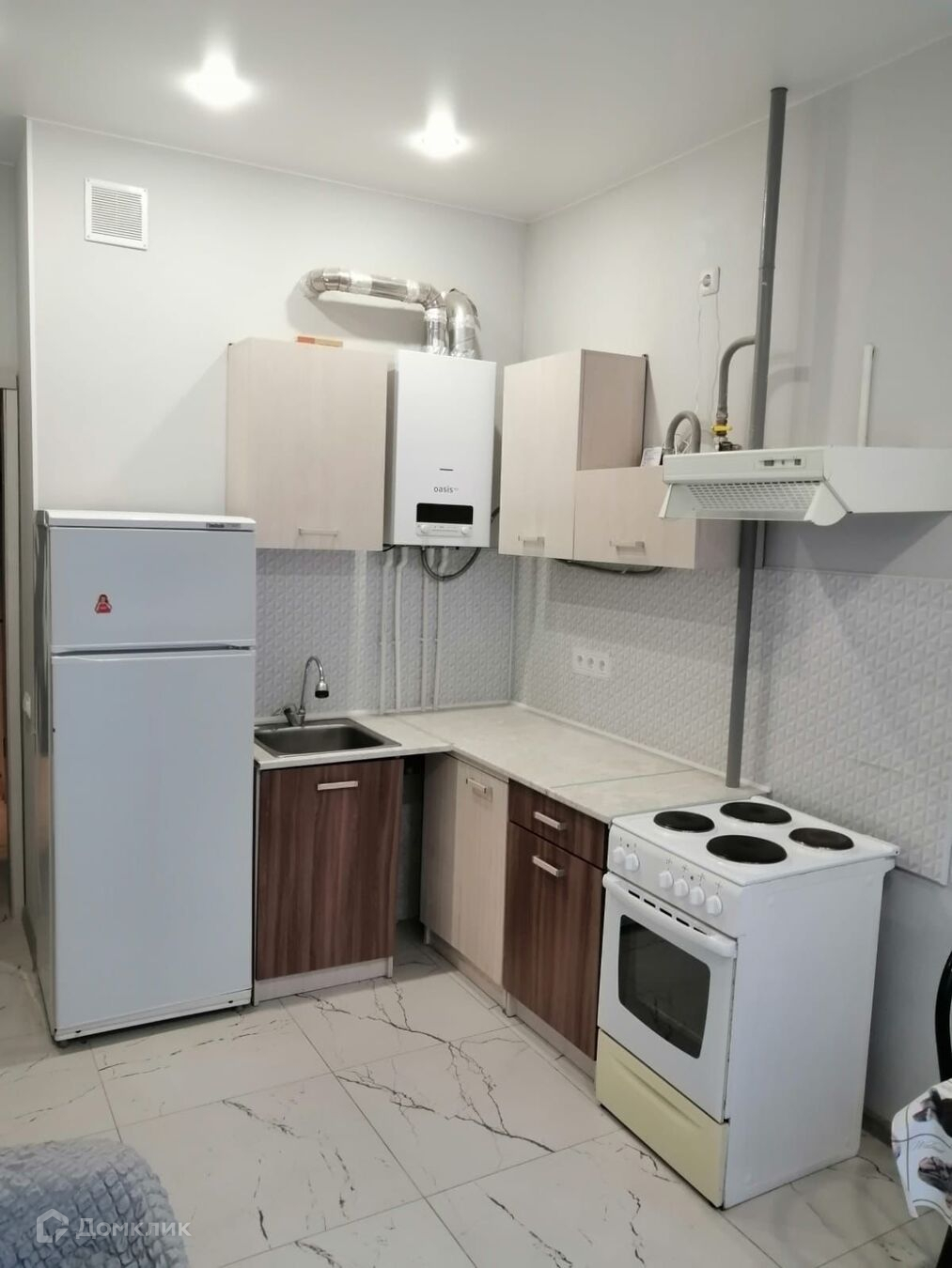 Индивидуальное газовое отопление, двухконтурный газовый котел, установлены приборы учета.