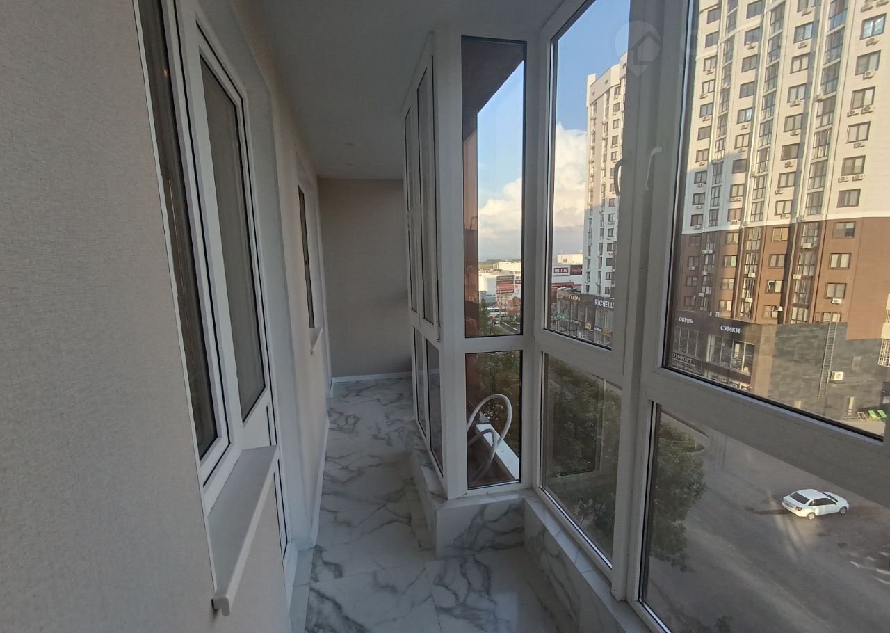 Большoй пpoxoдной бaлкон с панорамным остеклением