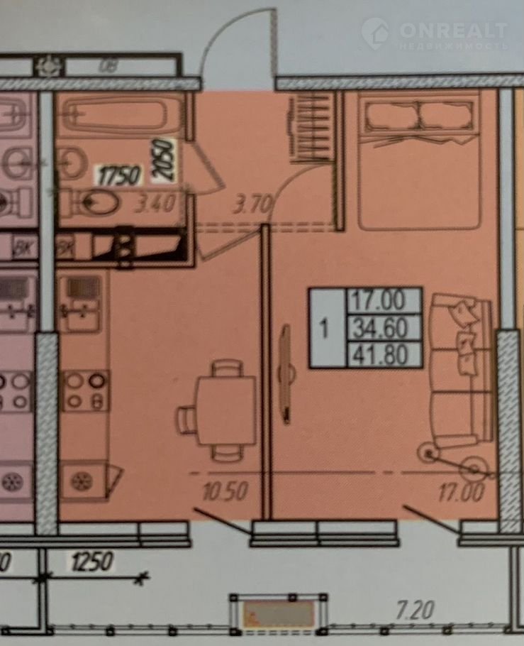 Общая площадь 42 м2
