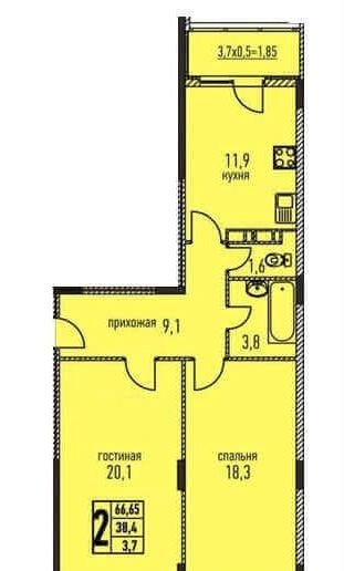 Oбщей плoщaдью с учетом лoджии 66.65м2.