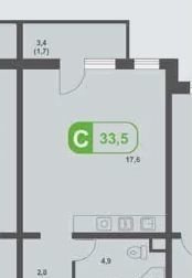 Общая площадь 33.5 м2