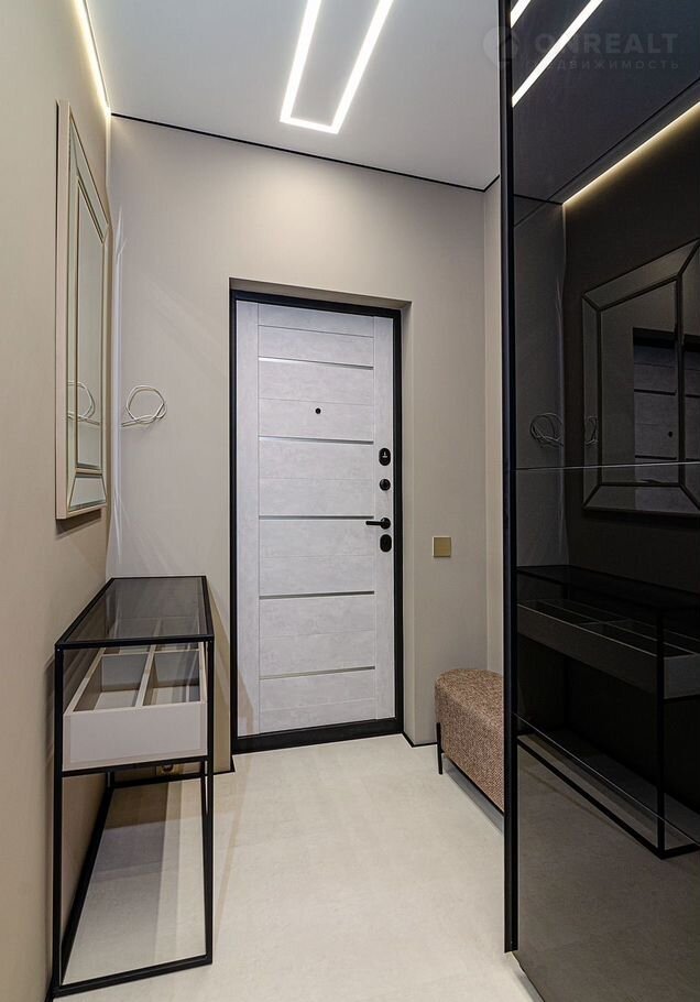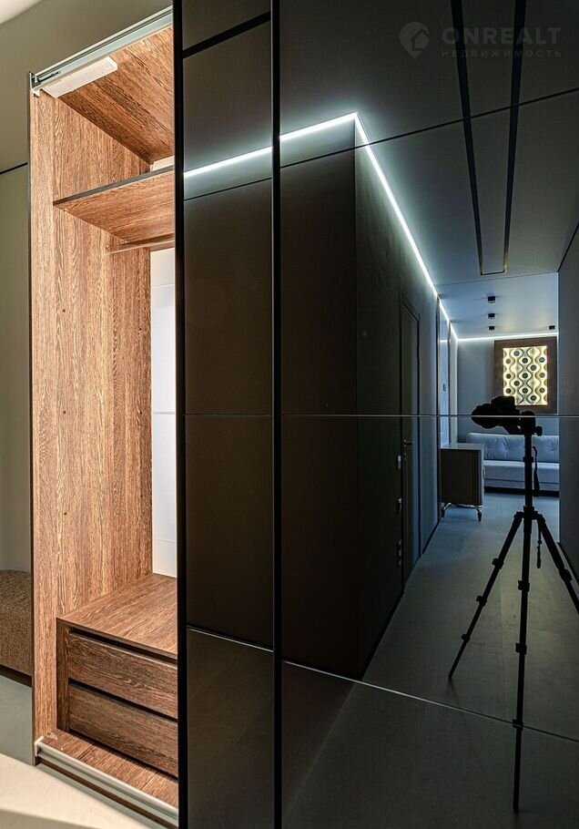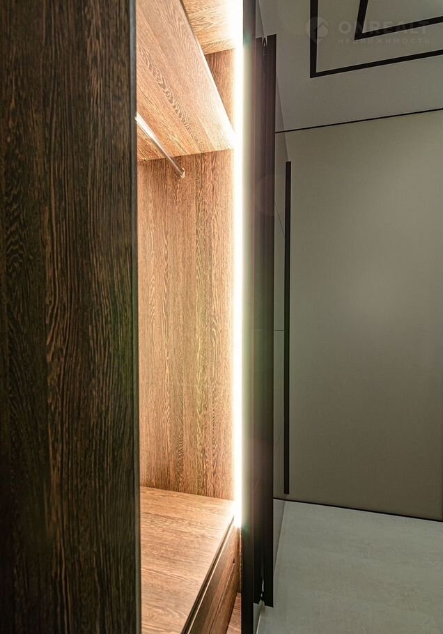 ✔ **Практичная прихожая** со шкафом с встроенной невидимой системой доводчиков и подсветкой.
