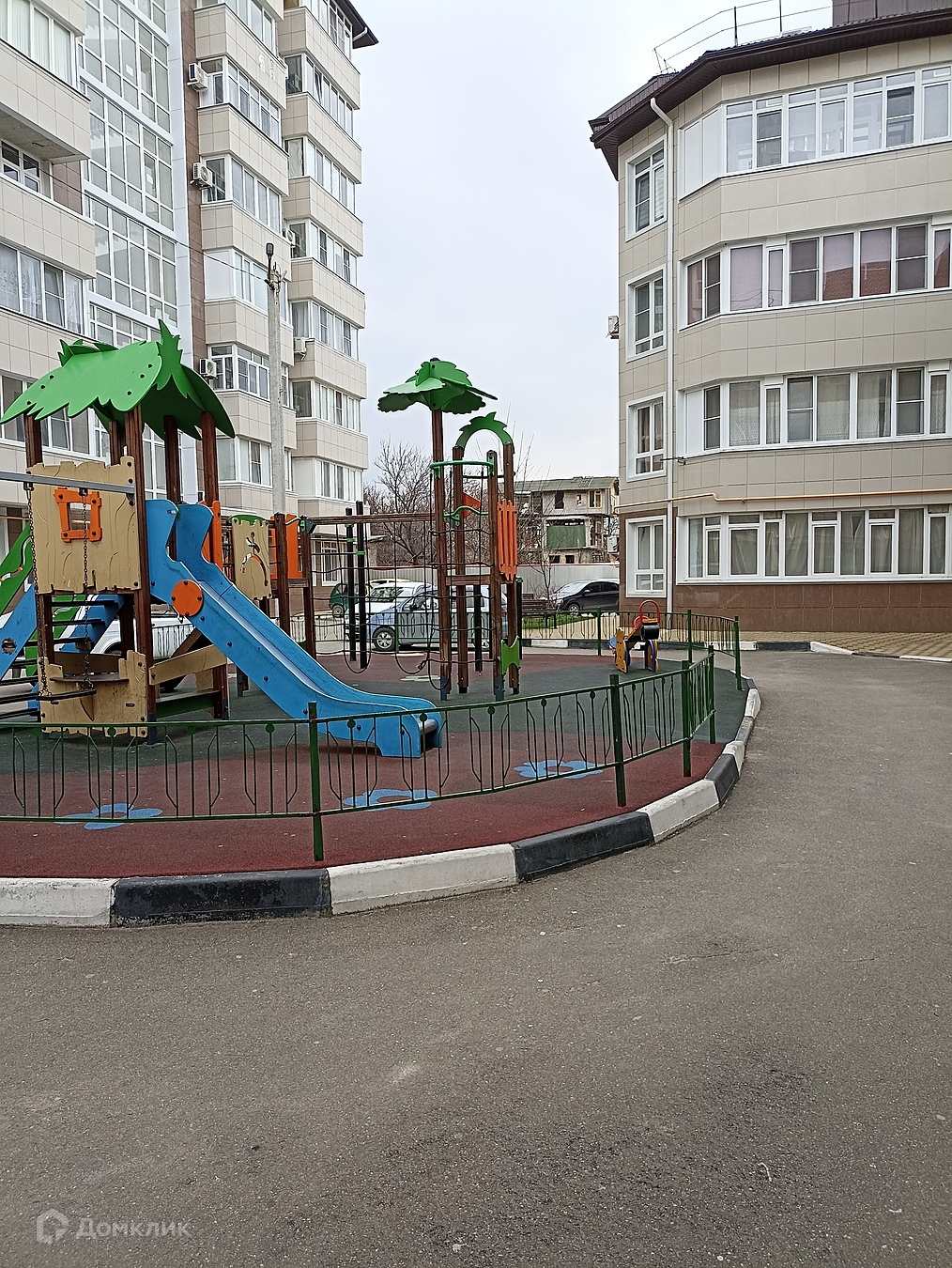 Территория двора закрытая.  Во дворе тренажеры, игровая площадка.