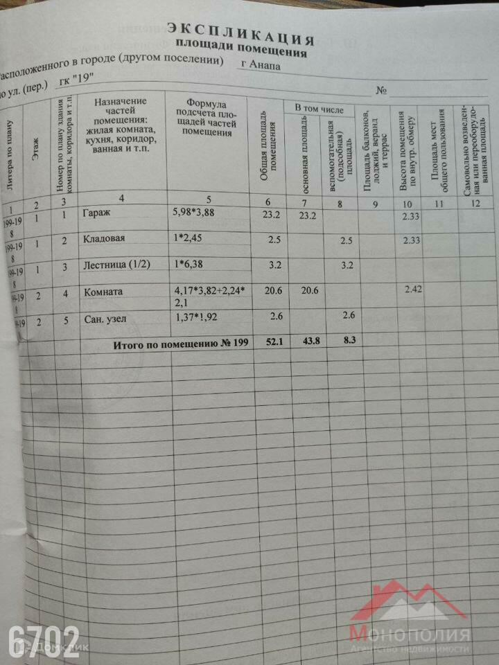 Коммуникации: Централизованные : электричество, водопровод и канализация. Логический разумный вариант для семейного летнего отдыха или прекрасно подойдёт для сдачи в аренду отдыхающим или на круглогодично. Возможно сдавать, каждый этаж отдельно, у них разные, друг от друга независимые входы.  Все двух и трёхэтажные гаражи в ГСК-19 используются для постоянного проживания или под сдачу. Жильё без затрат на побережье Черного моря, в Анапе по цене маленькой квартиры-студии.  Полностью готово к проживанию. Всё оборудование и коммуникации в технически исправном состоянии. Остаётся практически вся корпусная мебель и бытовая техника (телевизор на 1м этаже, электр.плита, вытяжка, сплит система, бойлер)