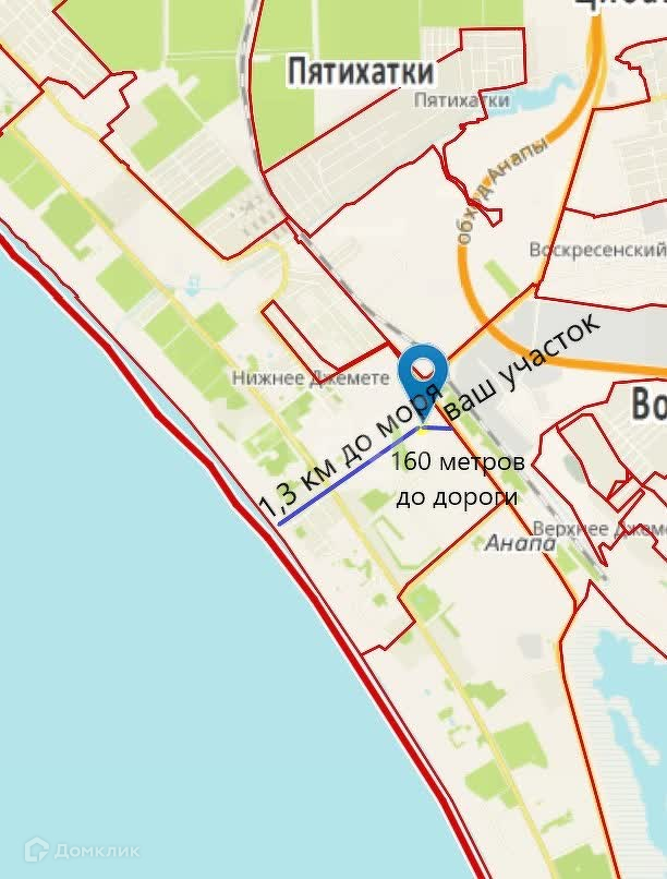 Продается земельный участок в курортном поселке Нижнее Джемете по самой привлекательной цене в данной локации. Площадь земельного участка 10 соток, участок правильной прямоугольной формы с фасадом 21 метр и глубиной 48 метров. Земельный участок без уклона, не подтопляемый. Категория земли: земли населенных пунктов, назначение земли: апартамент-отели, гостиницы, общежития. Очень привлекательная локация для бизнеса на второй береговой линии, вдоль трассы Анапа-Керчь рядом с ЖД вокзалом. До побережья Черного моря 1,3 км, отличное место для разного рода деятельности. По новому генплану весь район планируется застроить отелями! Зона назначения земли Р2.2 идеально подходит для строительства апарт-отелей, гостиниц, гостевых домов, коттеджей, торгово-развлекательных центров, банков, ресторанов, спортивных комплексов, магазинов, а также для придорожного отдыха, коммерции. Есть возможность подключения всех коммуникаций, включая газ! Район активно застраивается. Возможен вариант обмена на квартиру в Краснодарском крае. Звоните, отвечу на все интересующие вопросы.