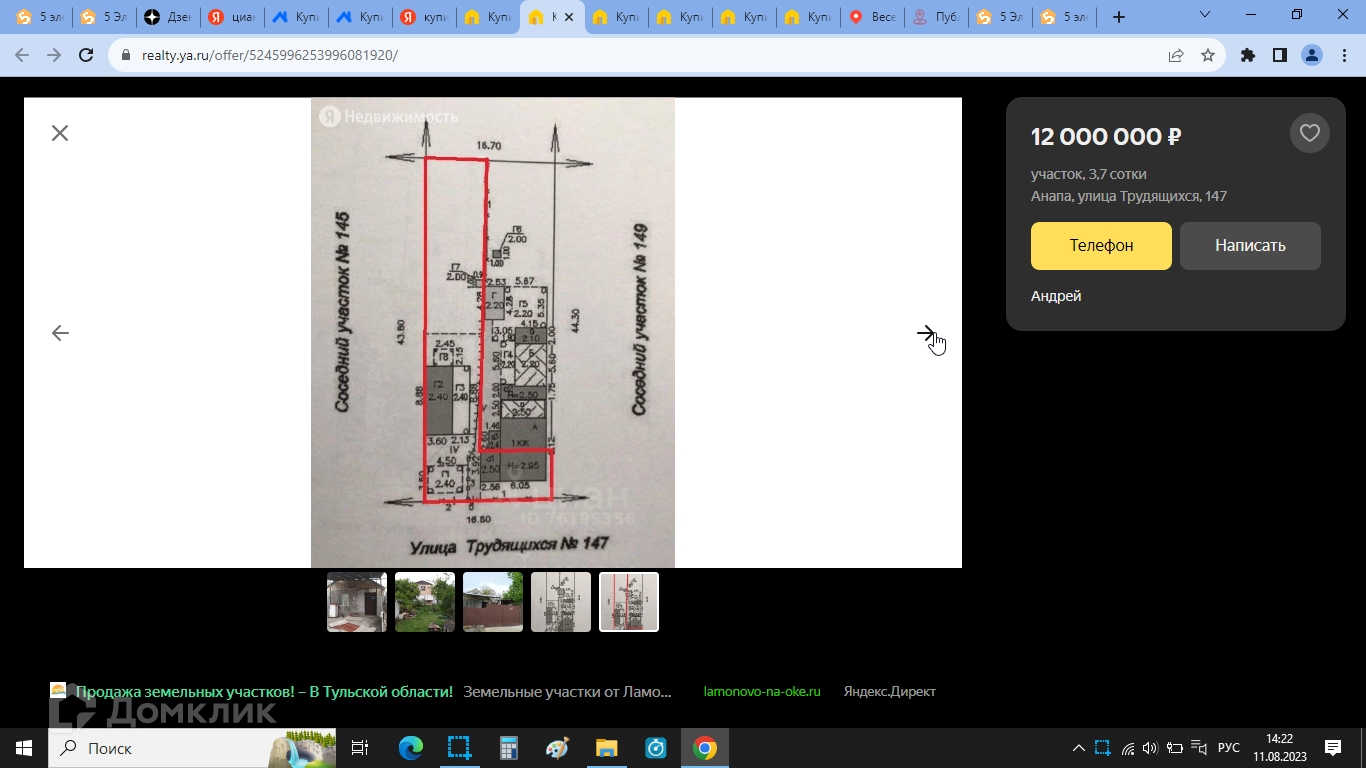 Участок под ИЖС, 3.7 сот. на продажу в Анапе, улица Трудящихся