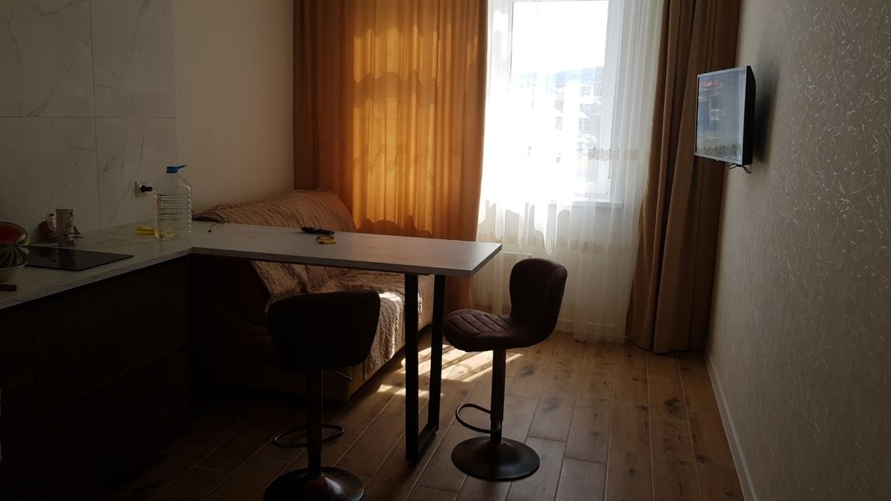 Сдается однокомнатая квартира на длительный срок с октября 2022 года по октябрь 2023 года в новом ЖК. Дом расположен в 600 метрах от высокого берега Черного моря. До ближайшего спуска на пляж 1 км. Стоимость  без увеличения на летний период.
