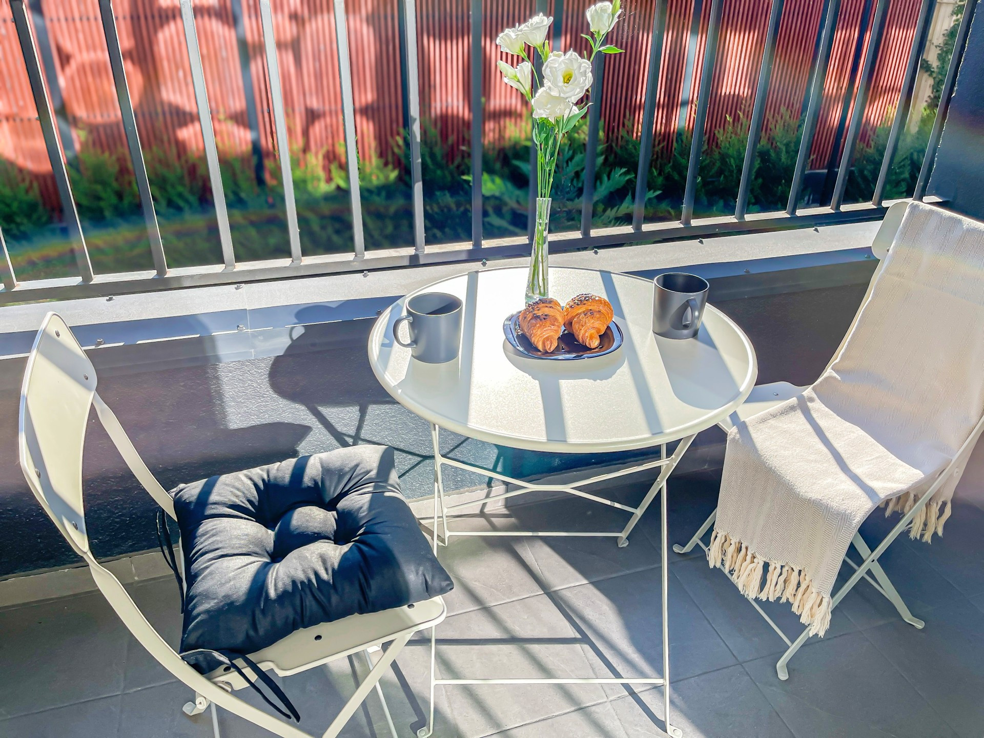 В АПАРТАХ открытая просторная лоджия с кофейным столиком и креслами для приятного отдыха.