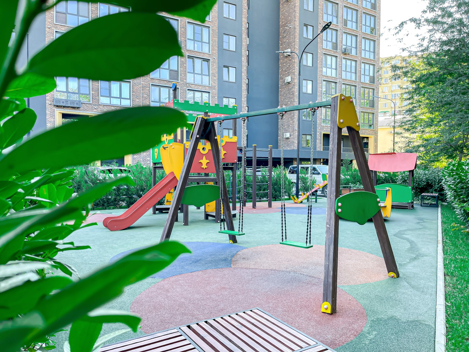 Территорию комплекса украшают красивейшие растения из солнечной Италии, выполнен ландшафтный дизайн, есть зона барбекю, индивидуальные зоны отдыха, детские площадки.