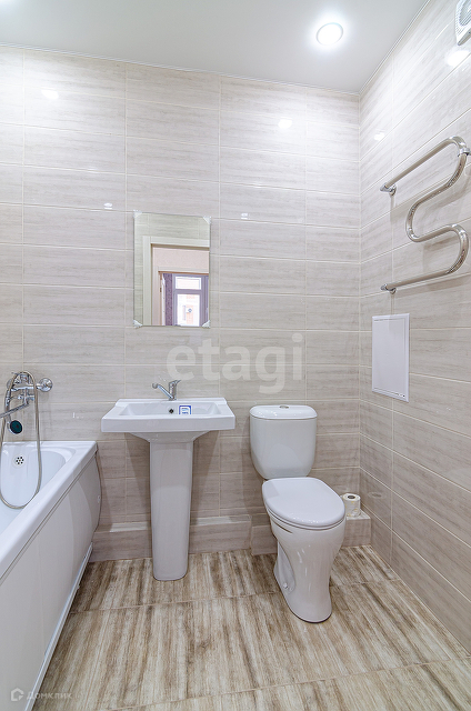 Кухня оборудована кухонным гарнитуром. Качественная входная металлическая дверь, износостойкий ламинат, натяжные потолки, санузел облицован керамической плиткой, качественные радиаторы отопления, сплит-система, водо-, тепло-, электросчетчики.
