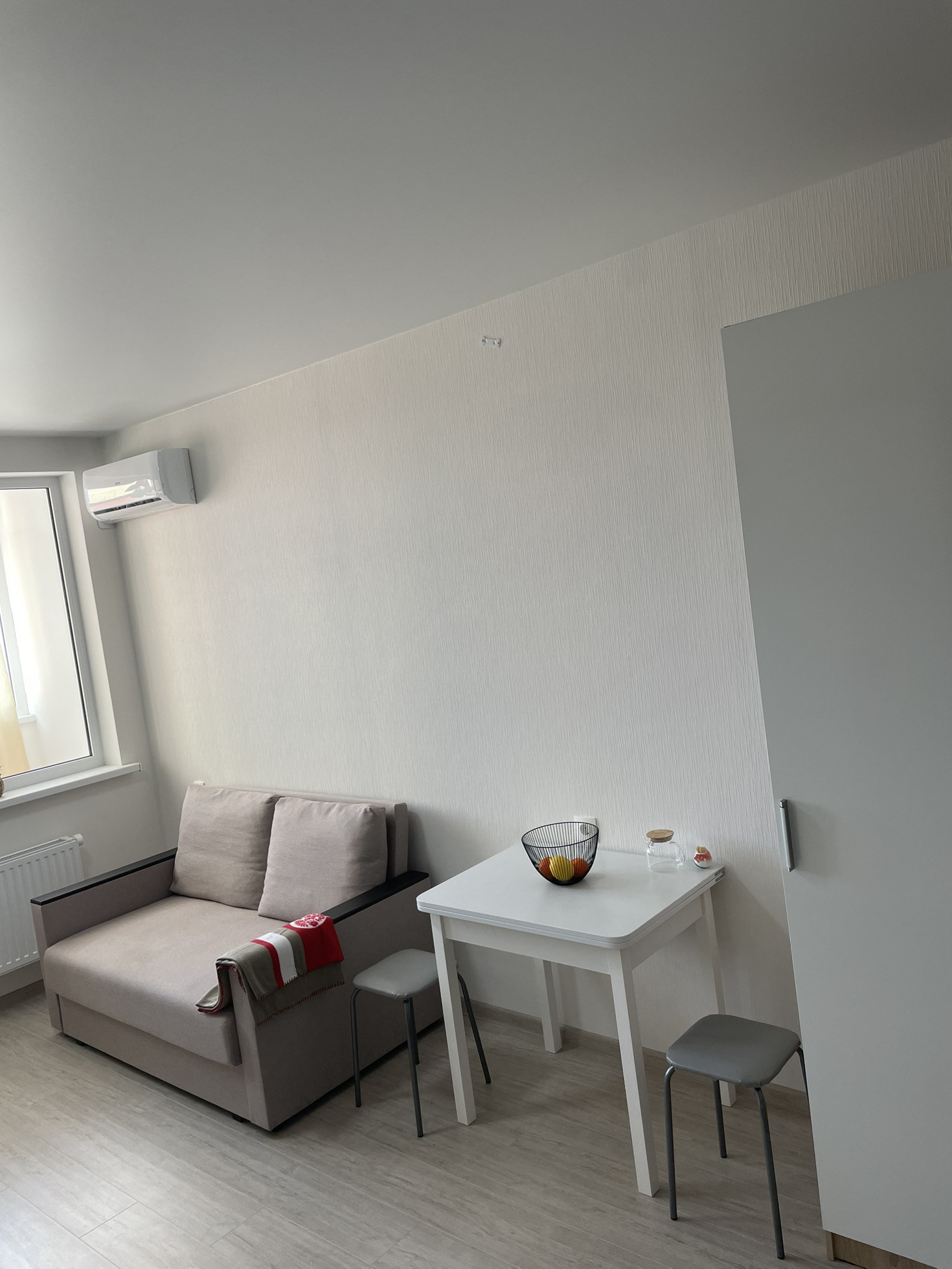 Всё необходимое для комфортного проживания имеется: Сплитсистема, телевизор, холодильник, диван, стиральная машина.