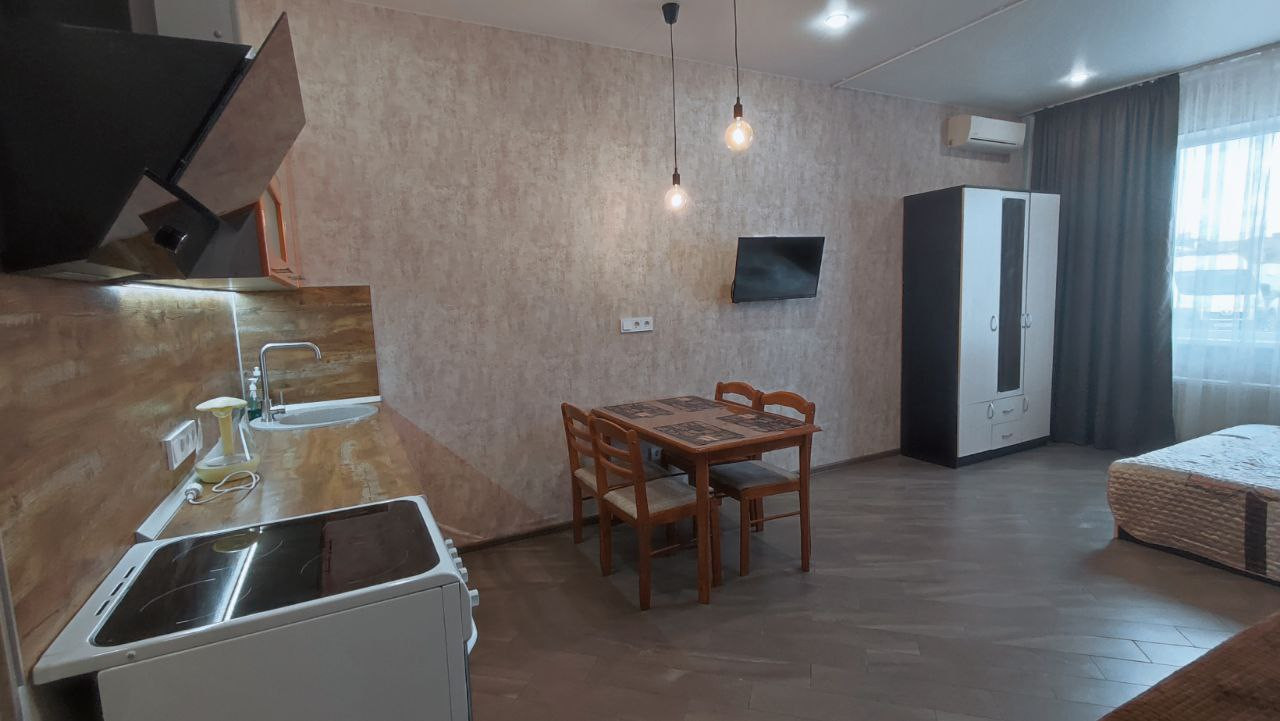 Просторная новая студия на первой береговой линии, в лучшем районе города Анапа. Имеется все необходимое для проживания. Большая двуспальная кровать, раскладной диван, кухня, электроплита, микроволновая печь, холодильник, сплит система, стиральная машина, электрочайник, посуда, тв, интернет и прочее.