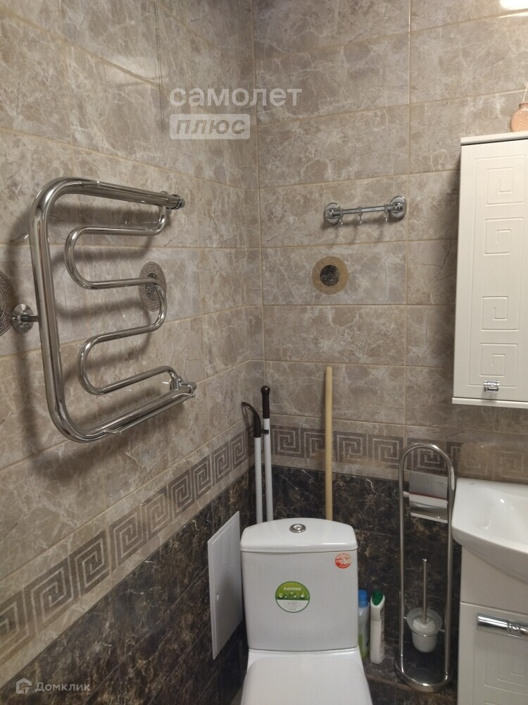 - на полу ламинат, сан. узел в кафеле