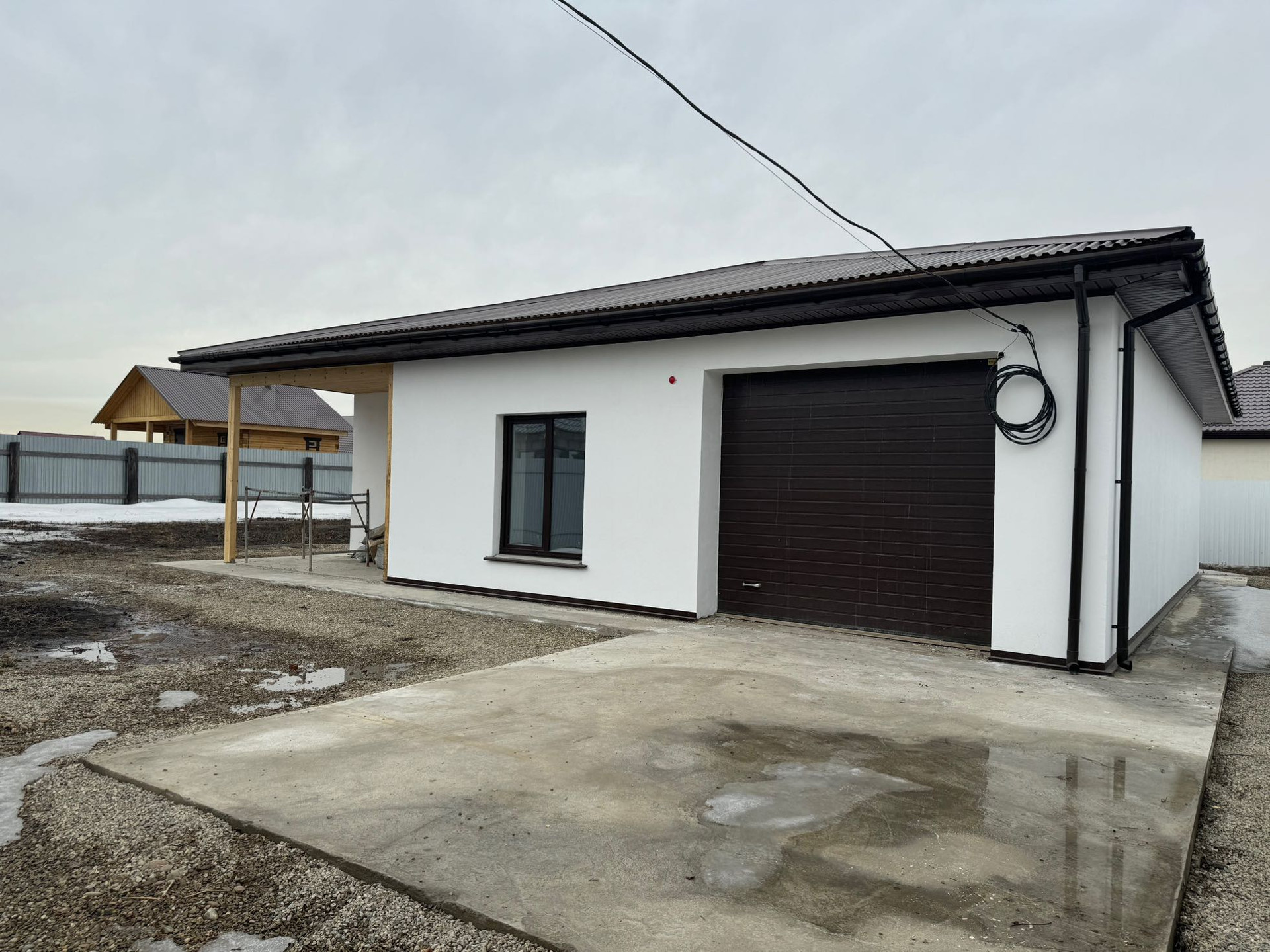 Продам новый дом, большой гараж, теплые полы, вода центральная, септик выгребная яма, дом из кирпича, сигнализация, натяжные потолки, стены под маяк, на полу стяжка, электрика