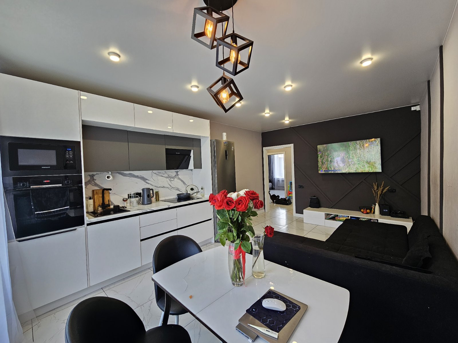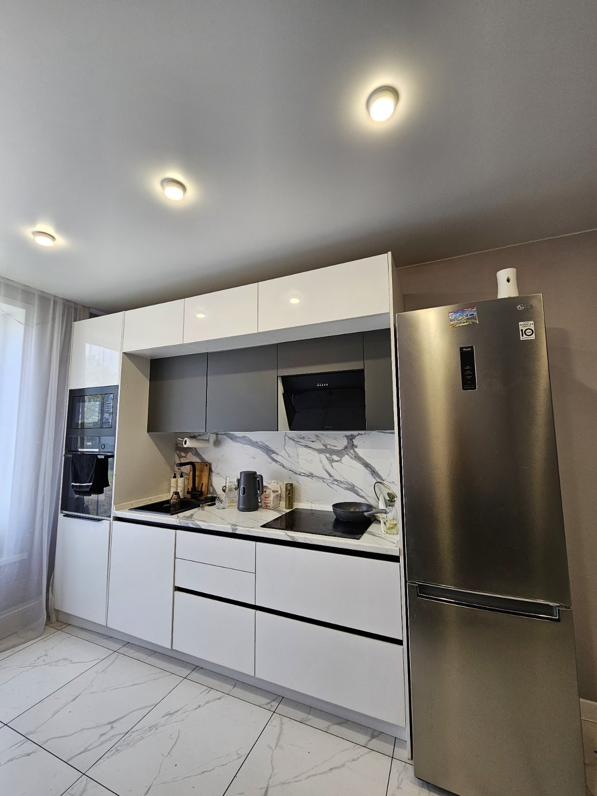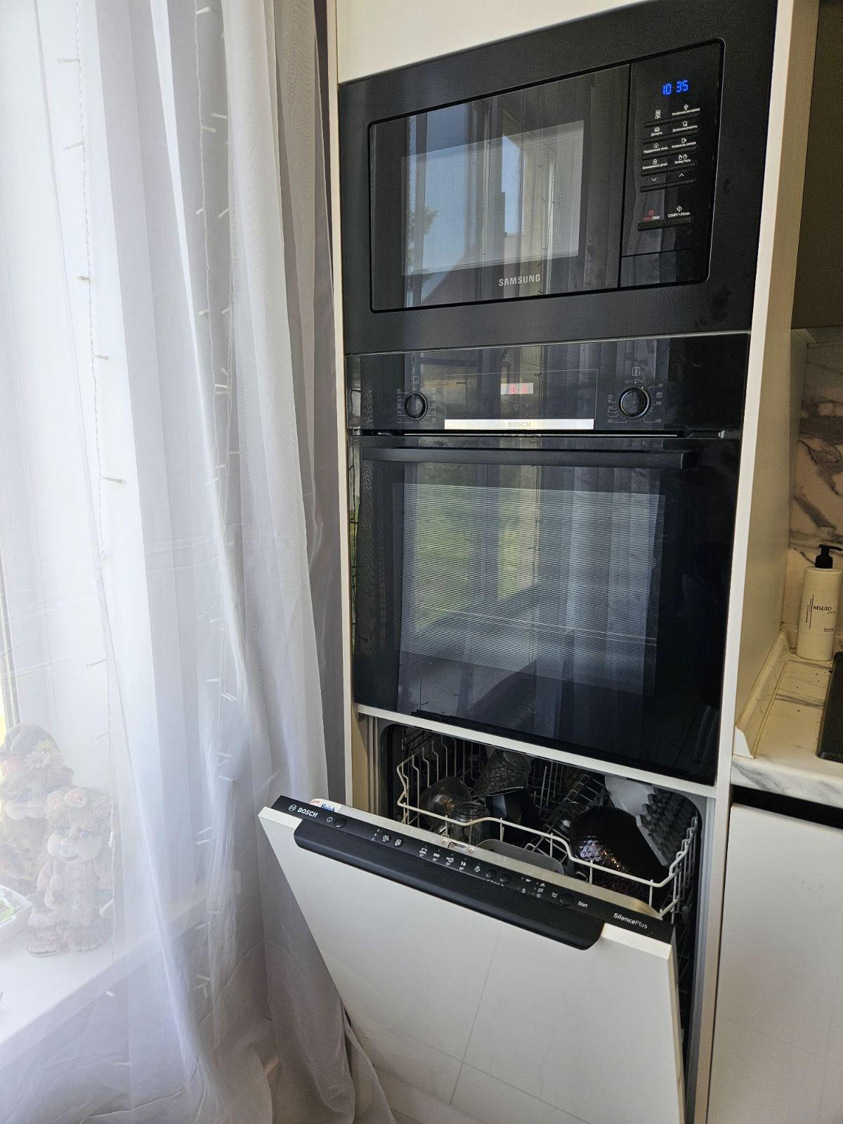 В подарок новым владельцам остается встроенная кухня. Варочная поверхность, духовой шкаф, посудомоечная машина, вытяжка. Остальная мебель по договоренности.