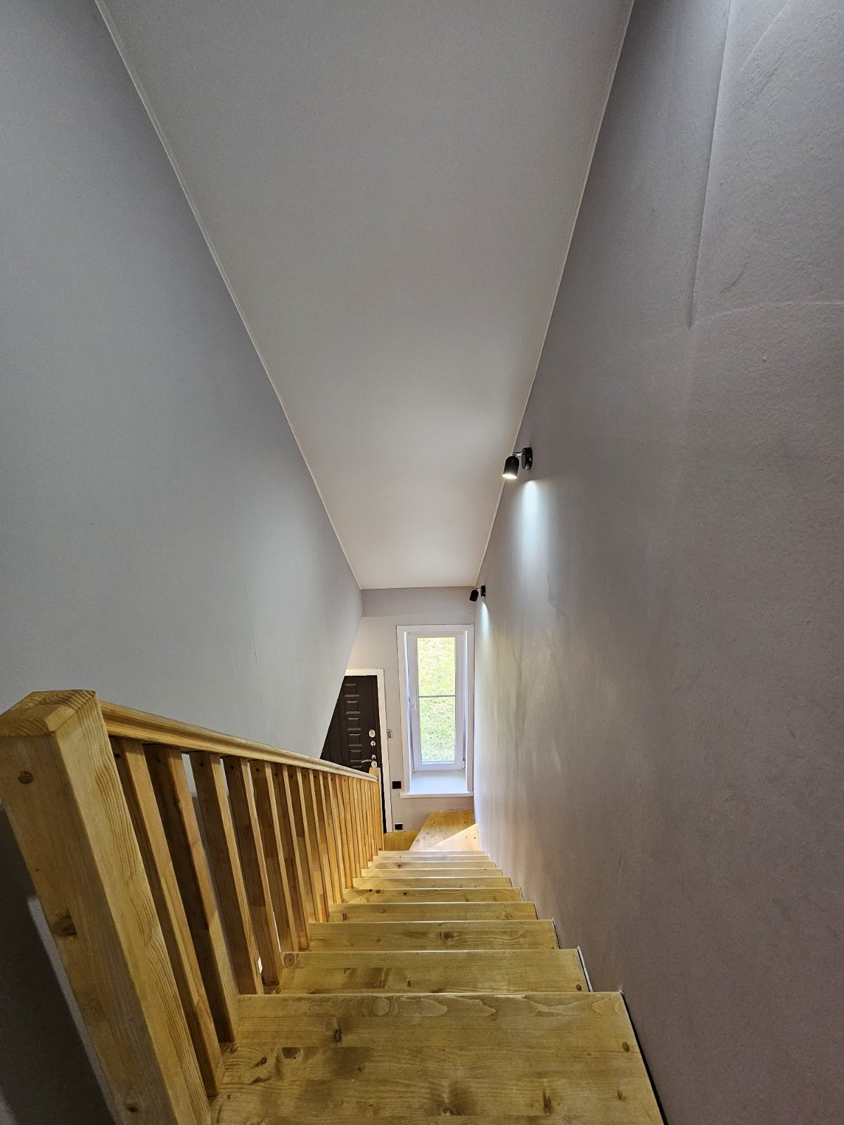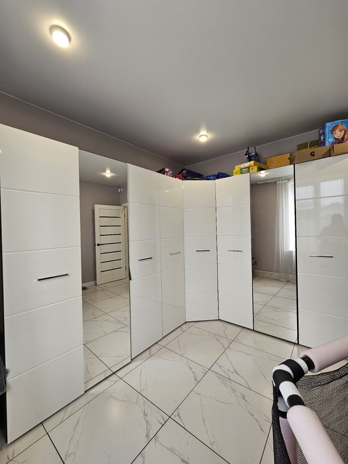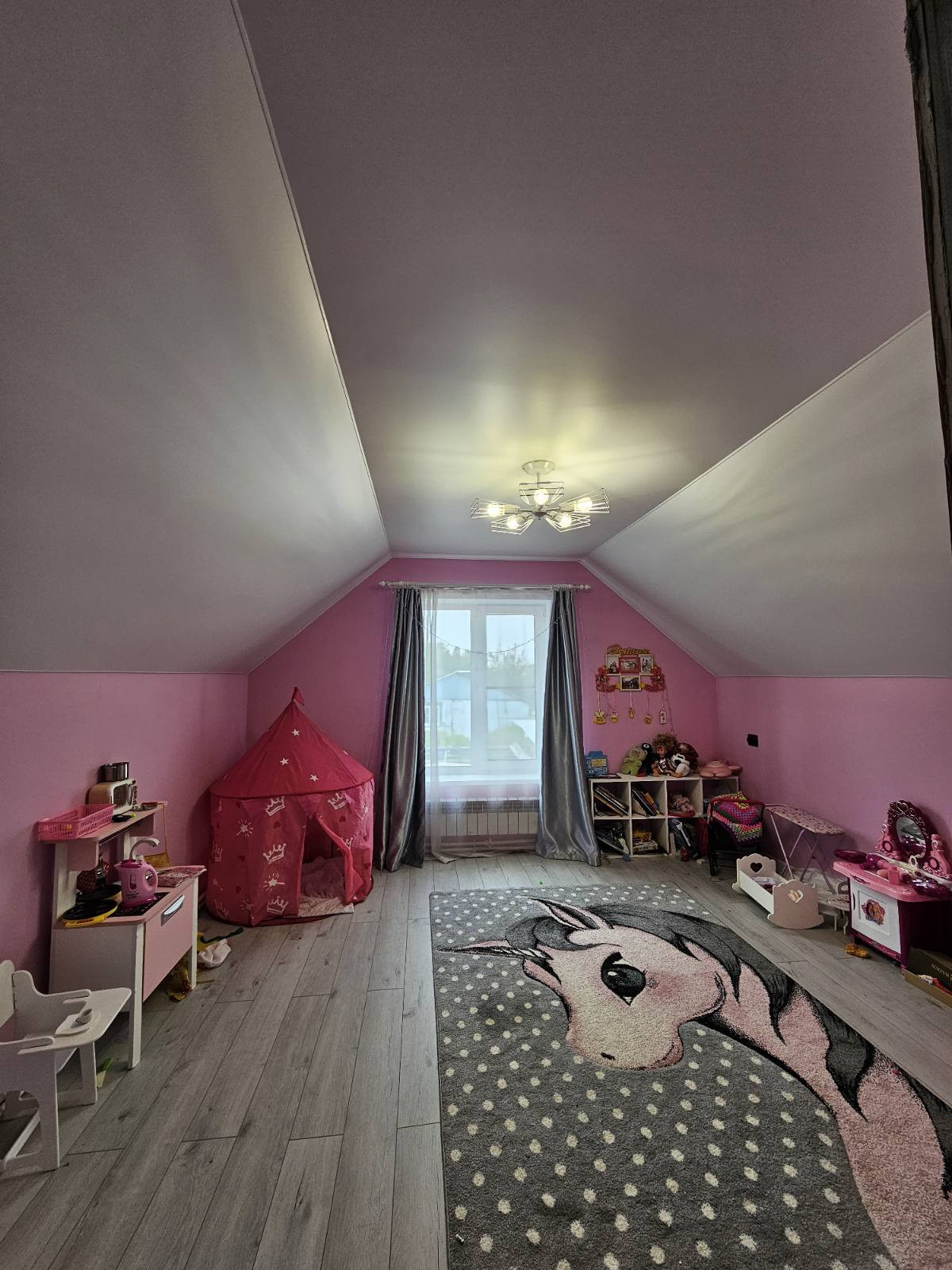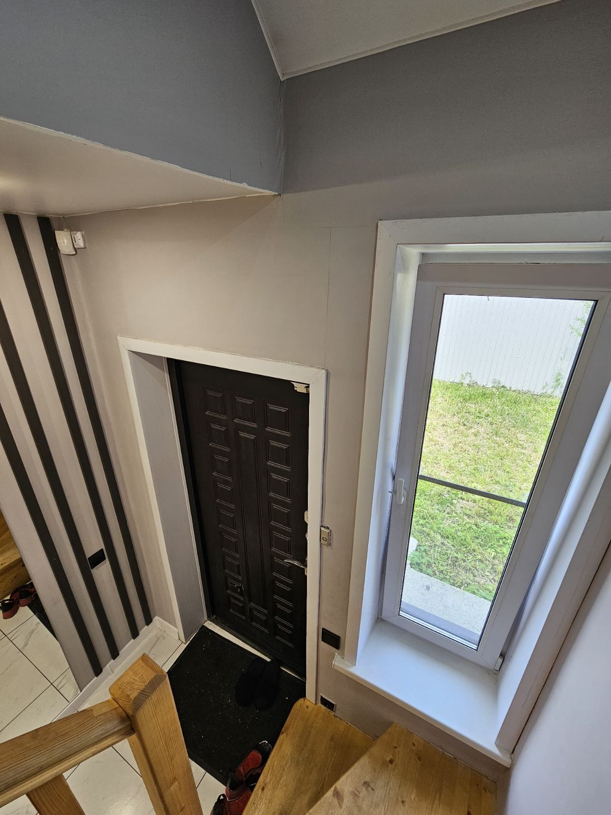 На первом этаже на полу уложен керамогранит, на втором этаже-ламинат высокого класса защиты.