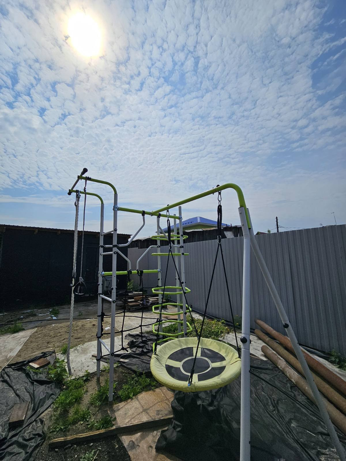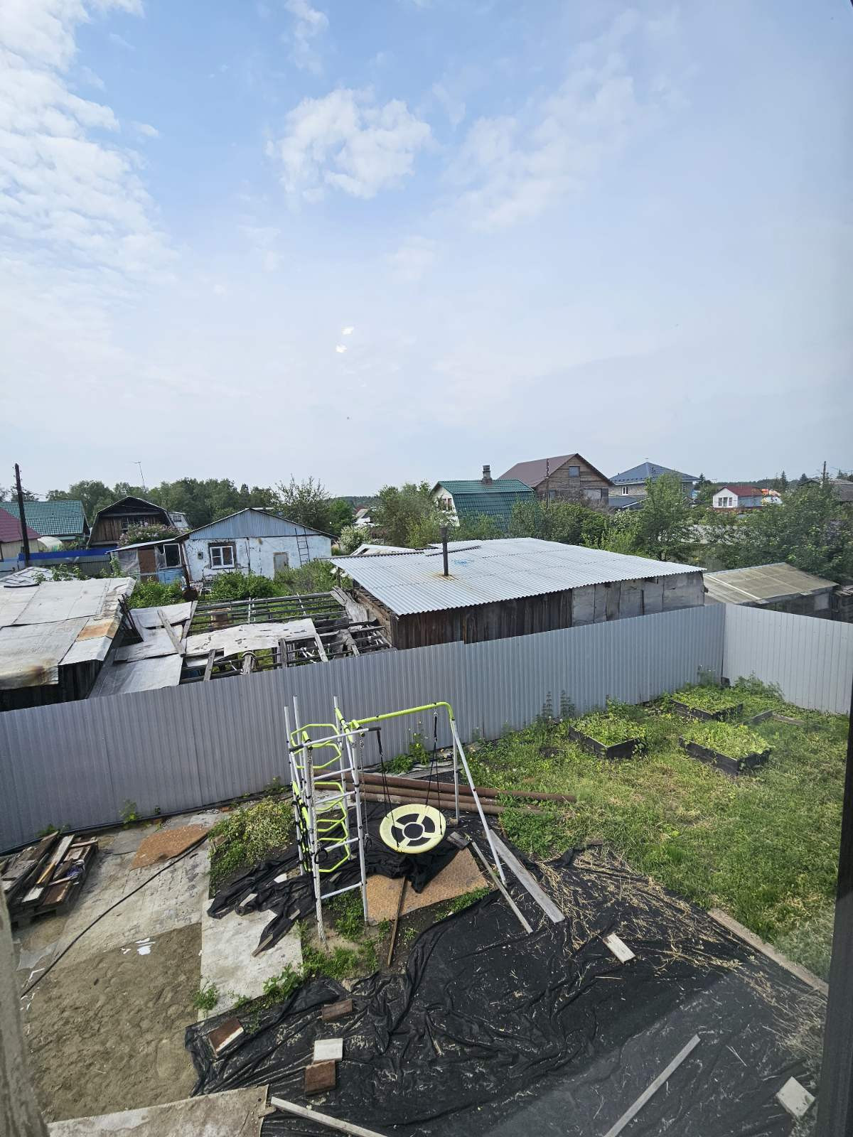 Земельный участок ровный, правильной формы, забор из металлопрофиля.