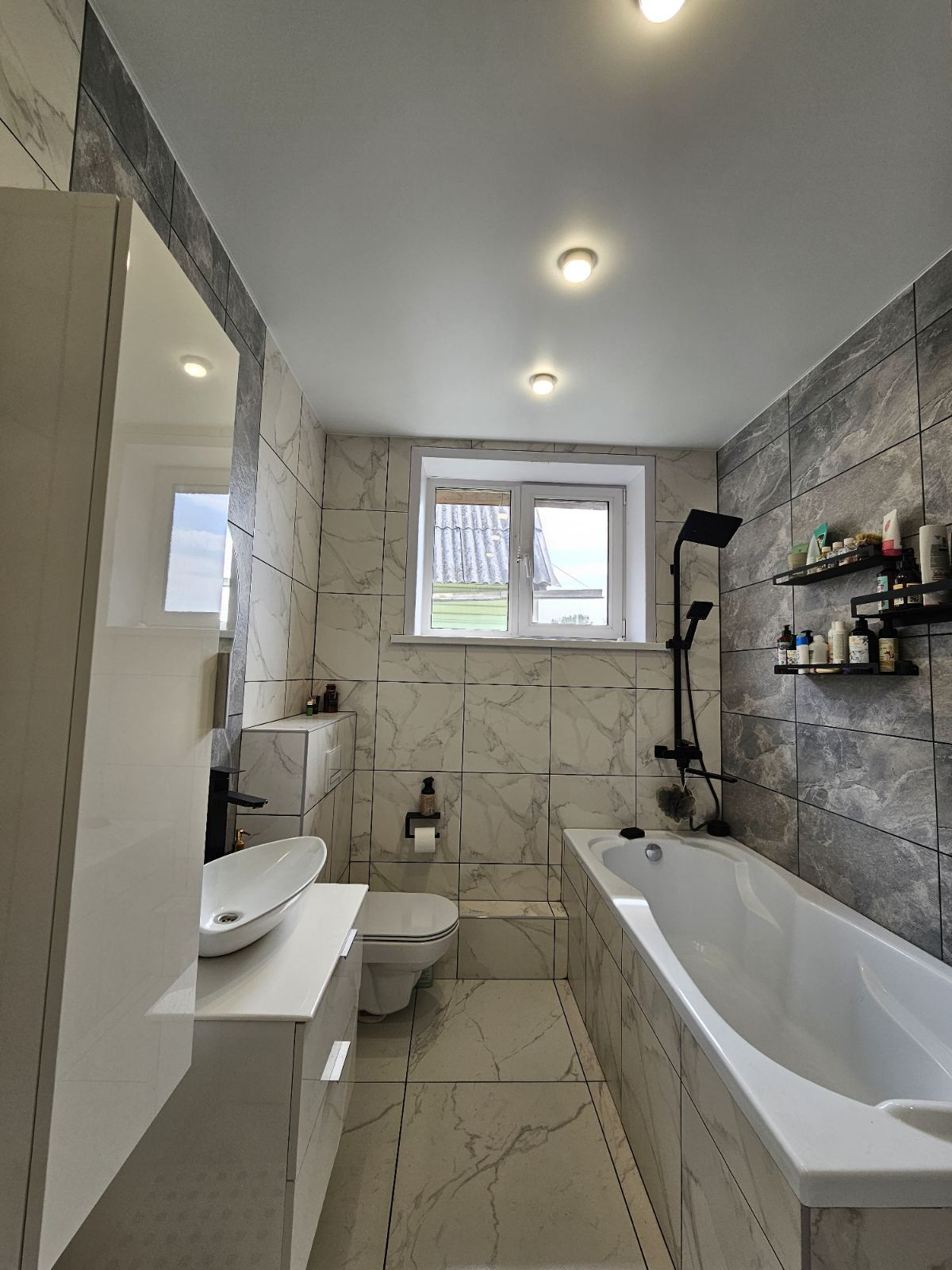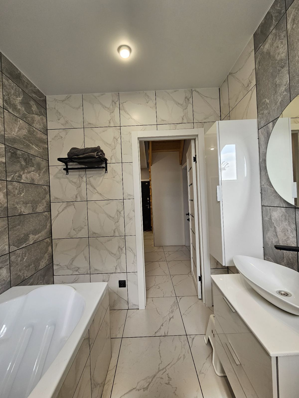 Санузел отделан дорогостоящим кафелем и установлена качественная сантехника, инсталляция.