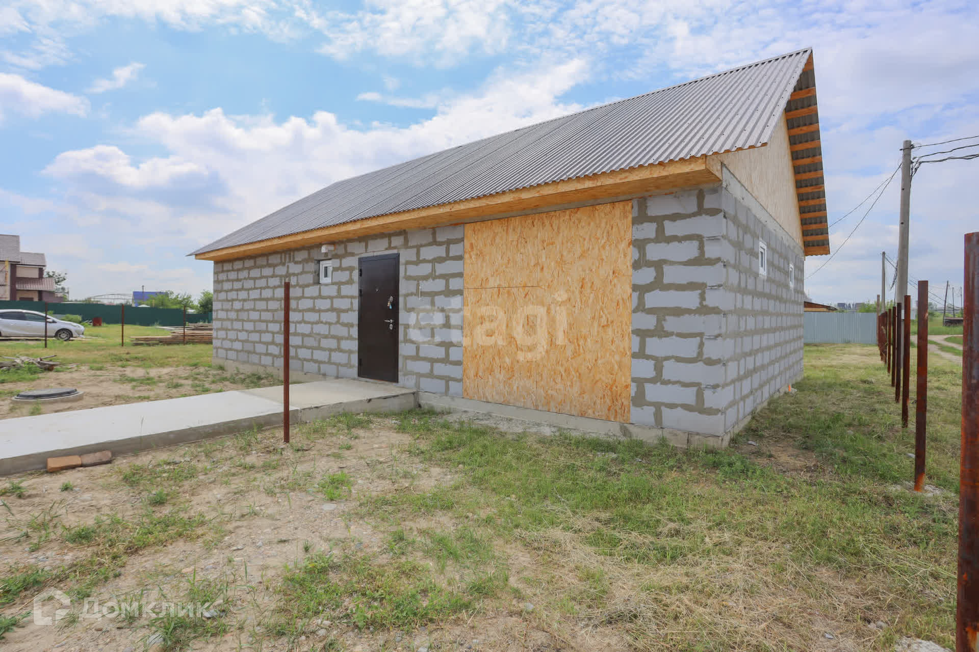 Дом из газобетона D 500, ширина 300 (стройкомплекс). В доме 3 комнаты и совмещенный санузел. Стены обшиты ГКЛ кнауф 12 и окрашены. Потолок утеплен 150мм базальтовой ватой. В туалете теплые полы, санузел в кафеле. Вода холодная централизованная круглый год, горячая от водонагревателя, объемом 80 л. Мощность электричества 15 Квт с возможностью подключения 380.К дому пристроен гараж.