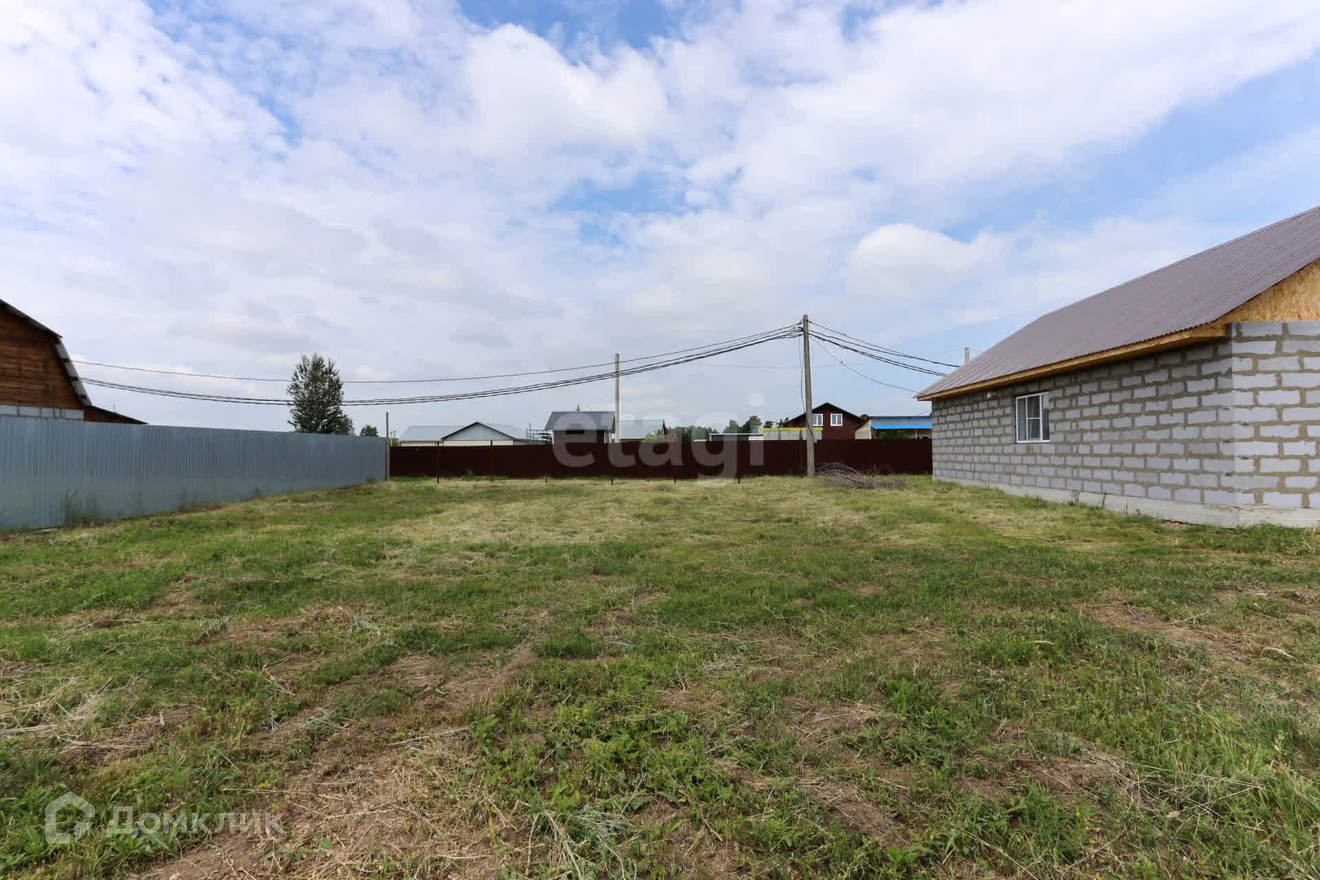 Участок ровный, по периметру вбиты столбы. Соседи живут круглый год, от города 5 минут, документы готовы, один взрослый собственник.