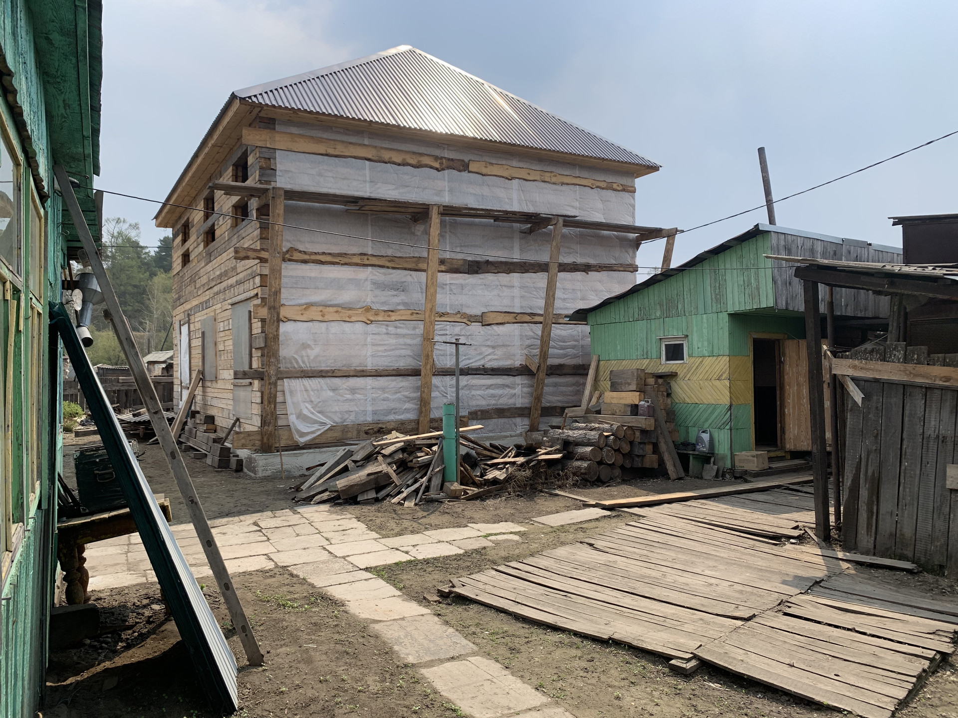 Возведены стены и кровля , так же на участке находится дачный дом , баня 4х4 , металлический гараж 6х3 , участок ровный , идеальный вариант для тех кто хочет контролировать строительство и в дальнейшем быть на все 100 уверенным в своём доме ( в итоге вы получаете новый дом с новым ремонтом сделанным под себя !