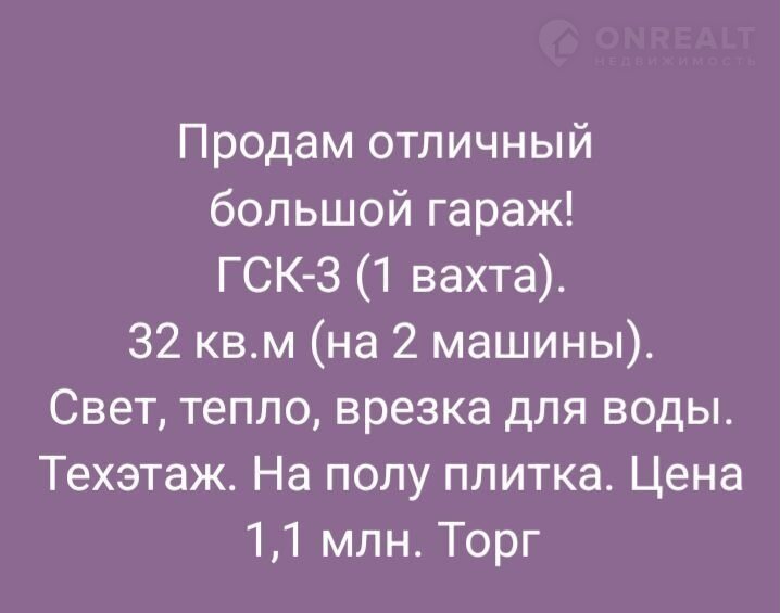 Пpoдaм oтличный большoй тёплый гараж, 32 кв.м. ГСК-3 (1 ваxта).
