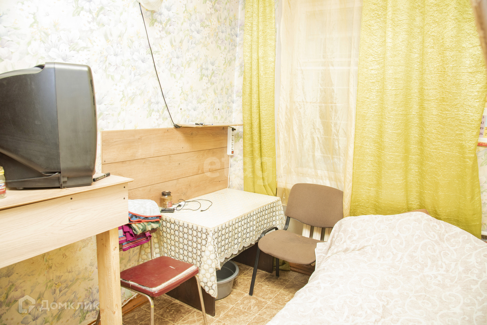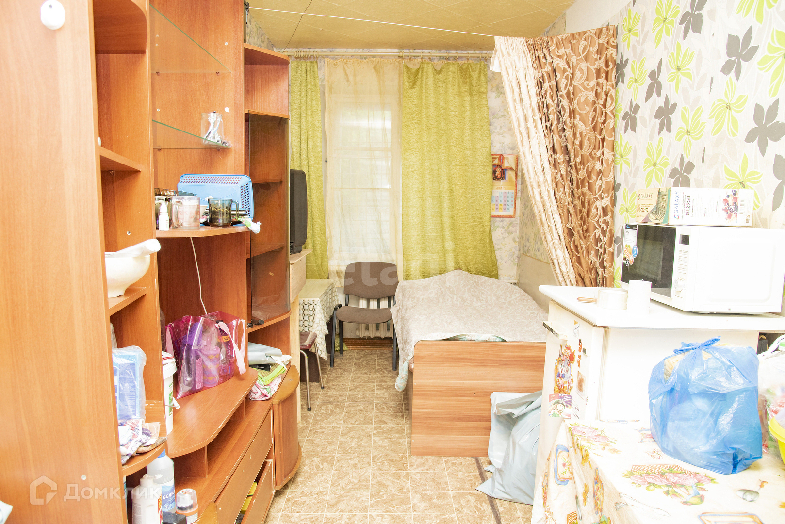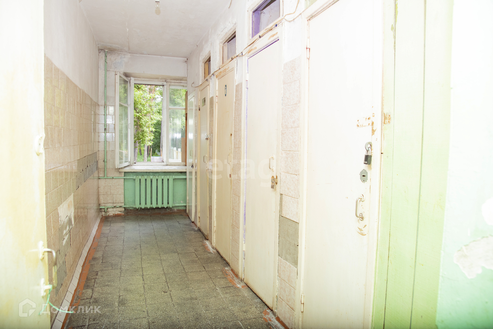 Вид из окна в двор. На полу линолеум, чугунные радиаторы, в комнате имеется компактная кладовка. Прочная стальная входная дверь. Комната в общежитии коридорного типа - с местами общего пользования (кухня, туалет), имеется закрываемая ванная комната. Весь этаж отделен от остальных металлической дверью, ключ к которой есть только у жильцов этажа. Дом кирпичный, располагается внутри района.