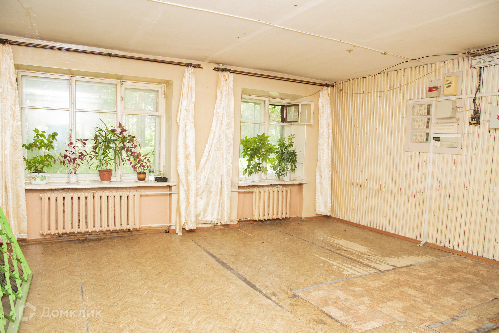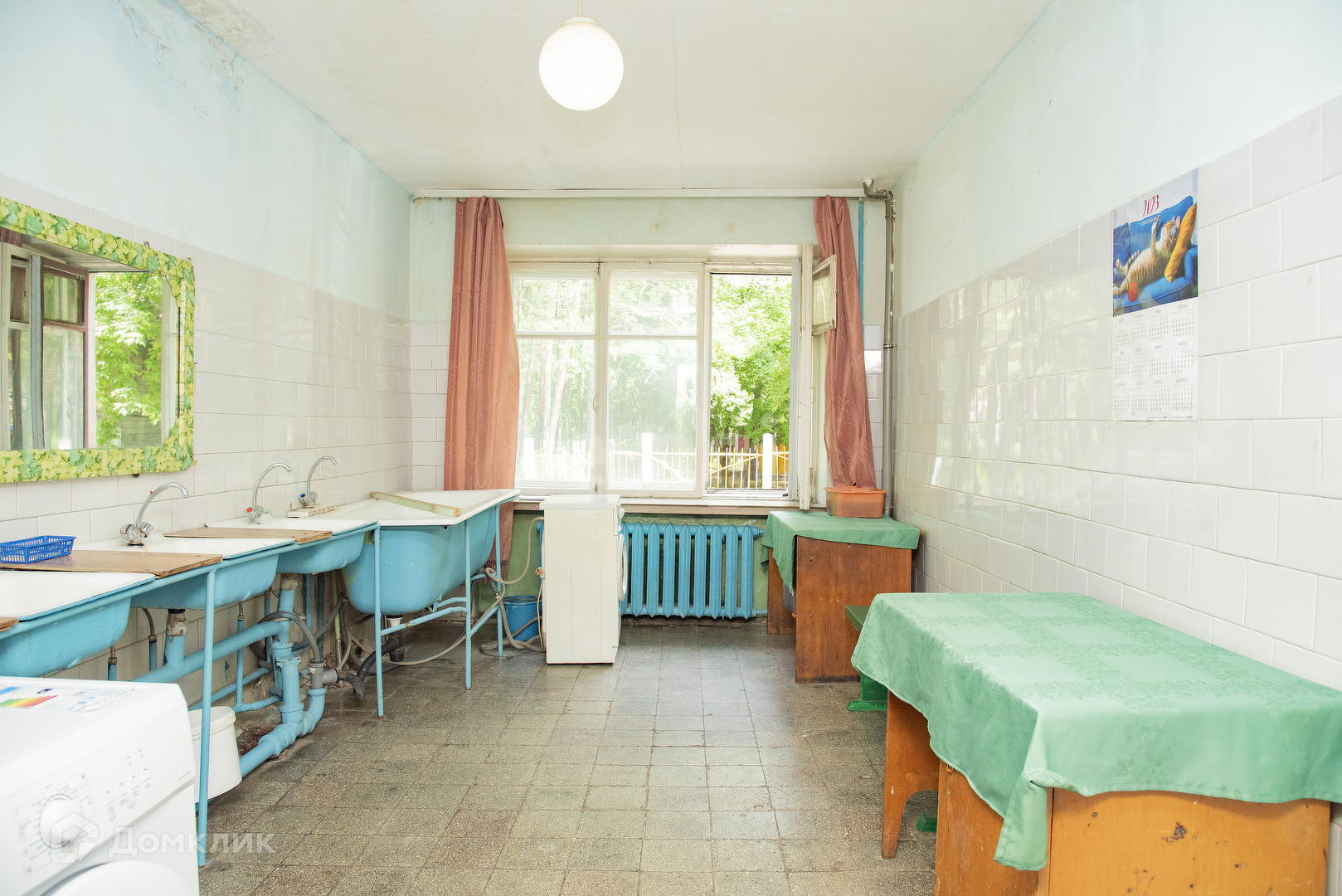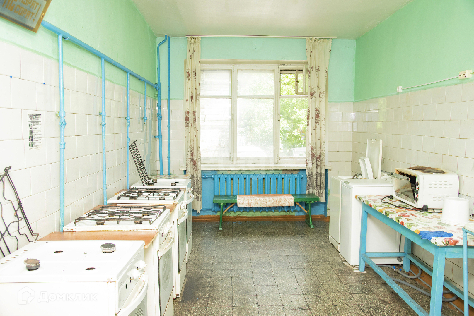 Вид из окна в двор. На полу линолеум, чугунные радиаторы, в комнате имеется компактная кладовка. Прочная стальная входная дверь. Комната в общежитии коридорного типа - с местами общего пользования (кухня, туалет), имеется закрываемая ванная комната. Весь этаж отделен от остальных металлической дверью, ключ к которой есть только у жильцов этажа. Дом кирпичный, располагается внутри района.