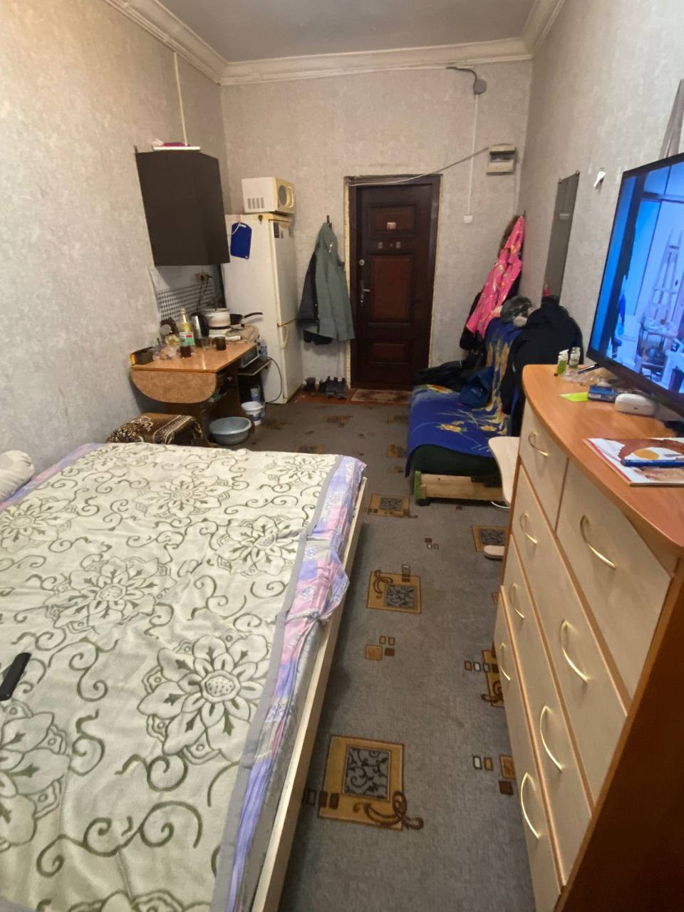 Чистые коридоры, места общего пользования. За комнатой закреплен душ, место стиральной машинки закреплено за комнатой, есть место для сушки белья, сан узел на две комнаты.