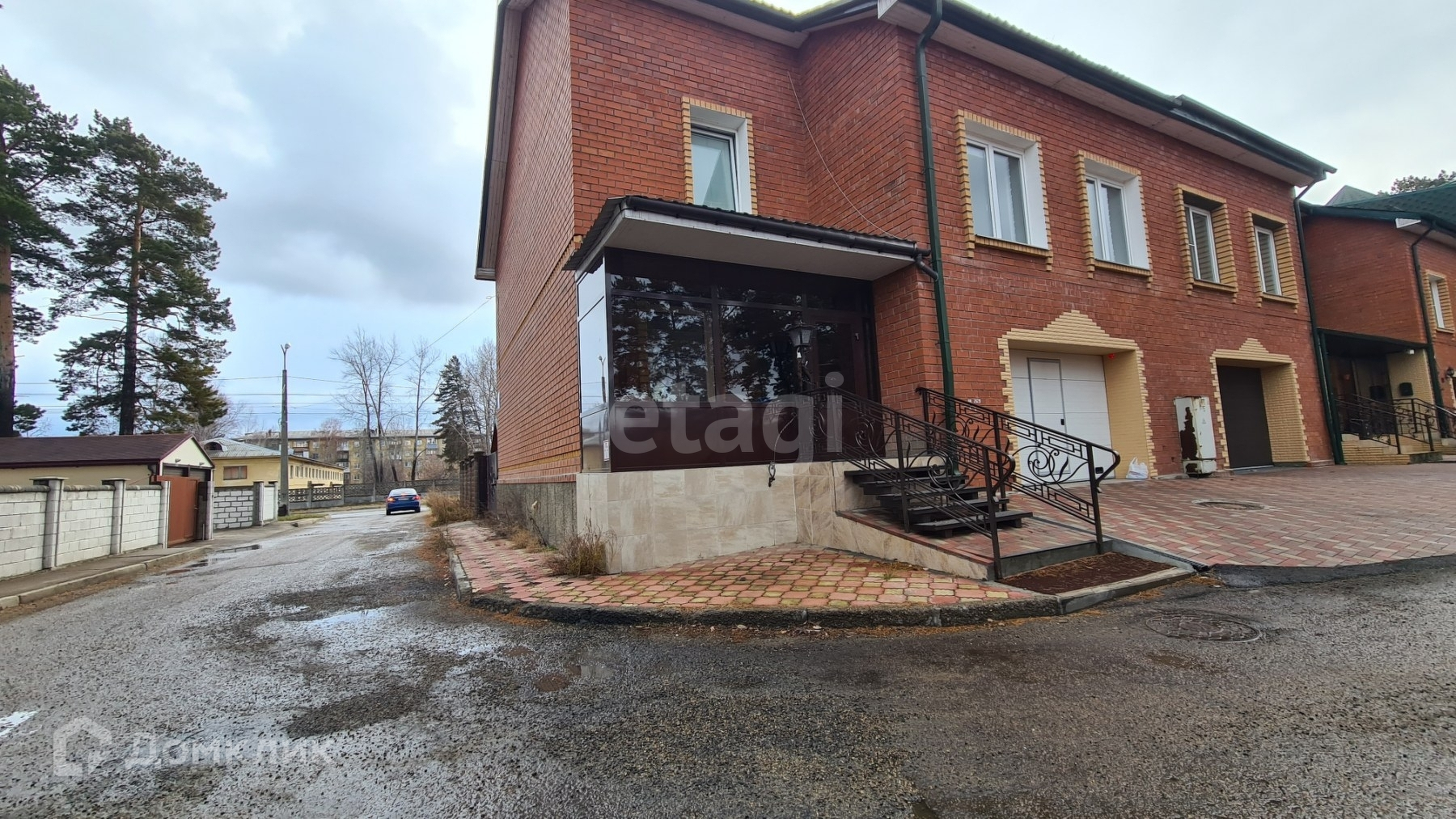 ОПИСАНИЕ: 2-х этажный таунхаус площадью 402 м2, кухня-студия, высокие потолки. Балкон застеклён. Территория огорожена кирпичным забором.