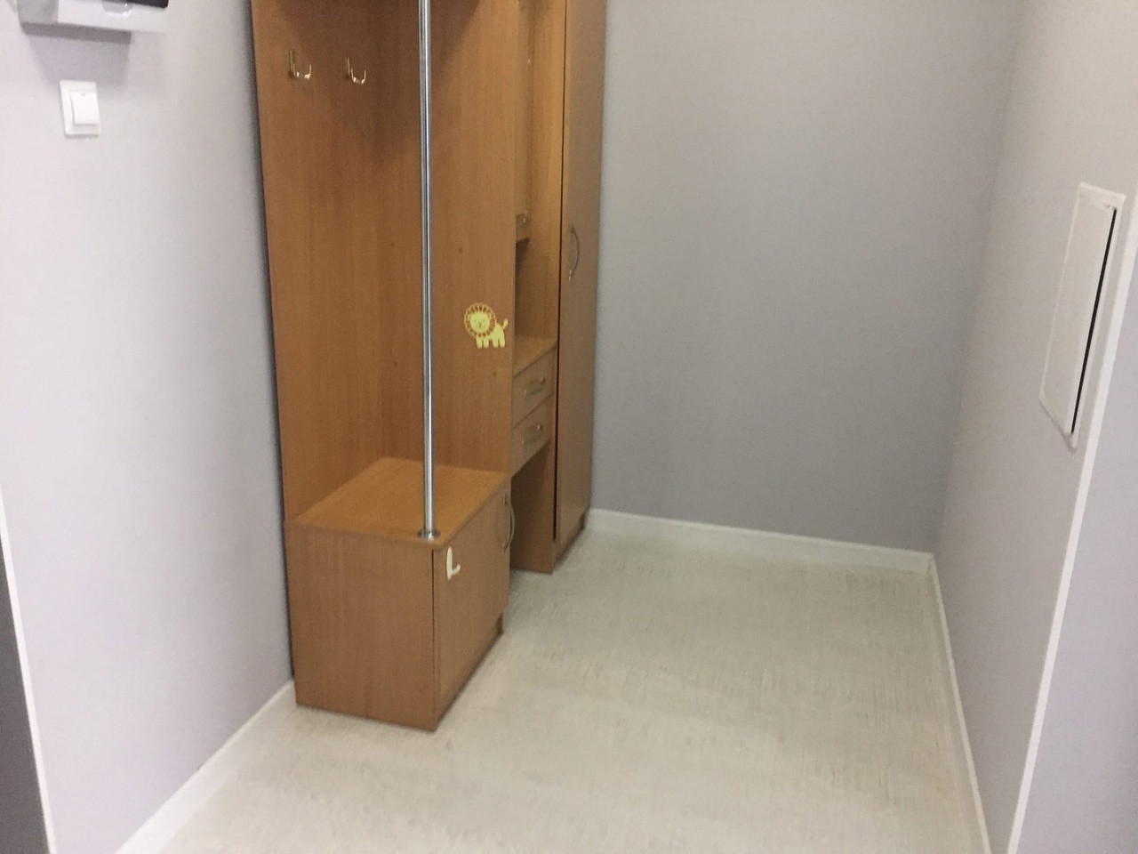 В квартире сделан евроремонт, санузел совмещённый, в очень хорошем состоянии, имеются счётчики на воду и электричество, кухня с плитой и прихожая остаются будущим хозяевам. Пол: плитка ПВХ, потолок: натяжной, подведены дополнительные розетки, батареи новые.