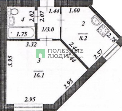 Жилая площадь 16.1 м2