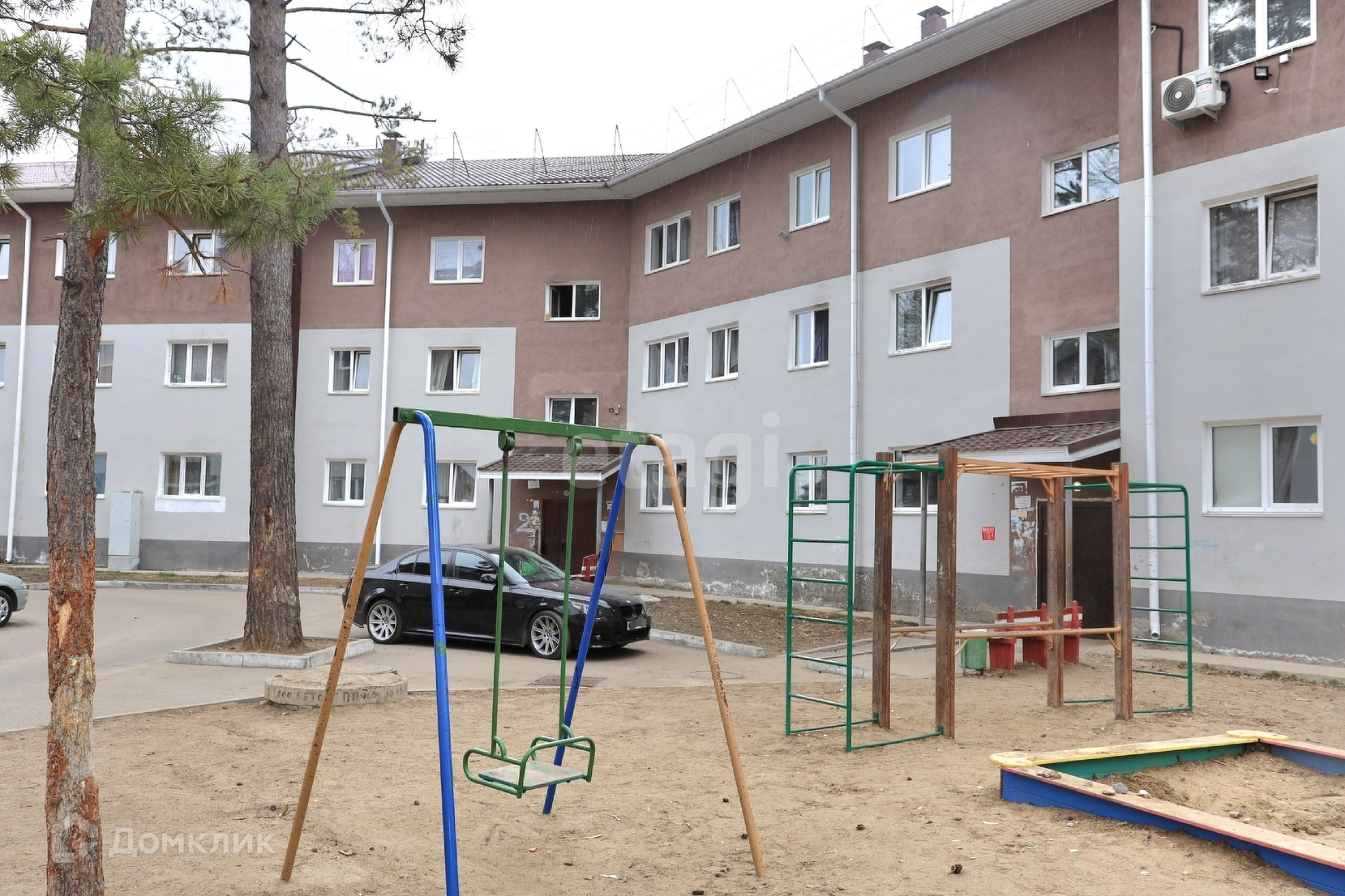Придомовая территория заасфальтирована, выполнено озеленение территории, установлены детские и спортивные площадки.
