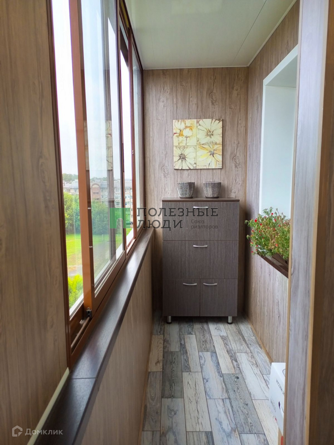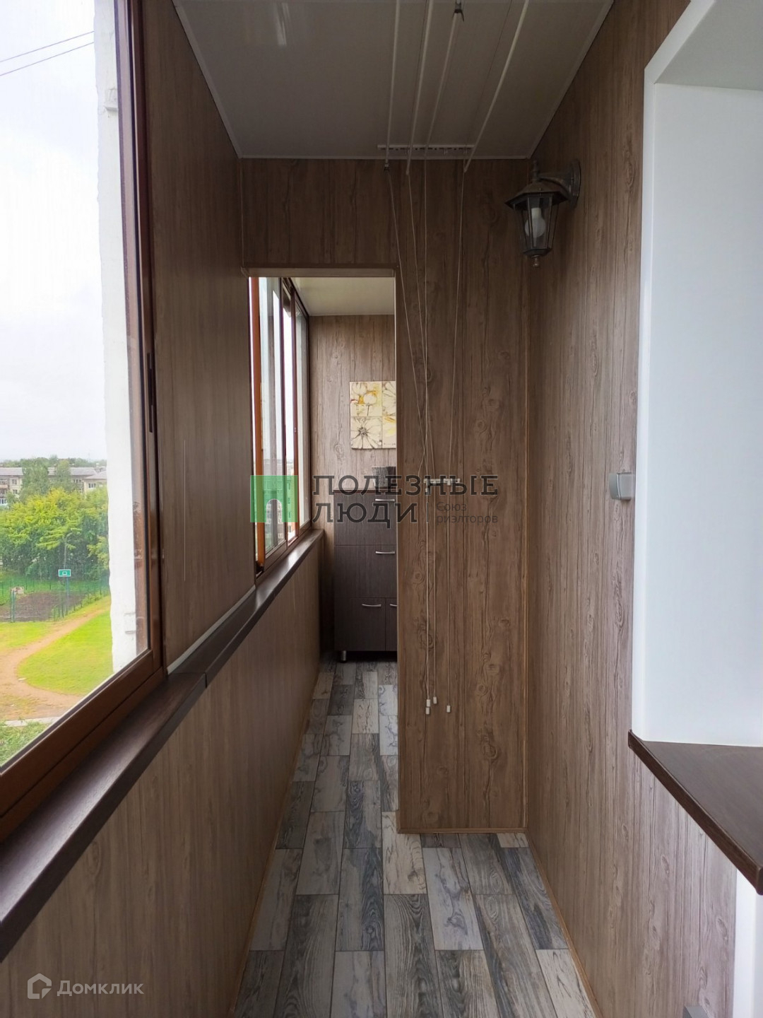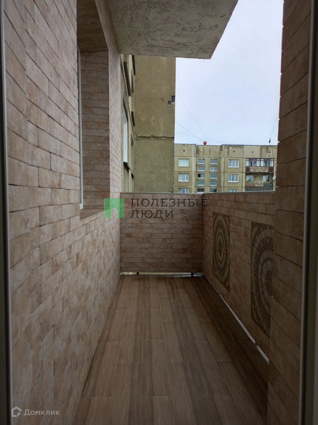 На одном балконе плитка на полу и стенах.
